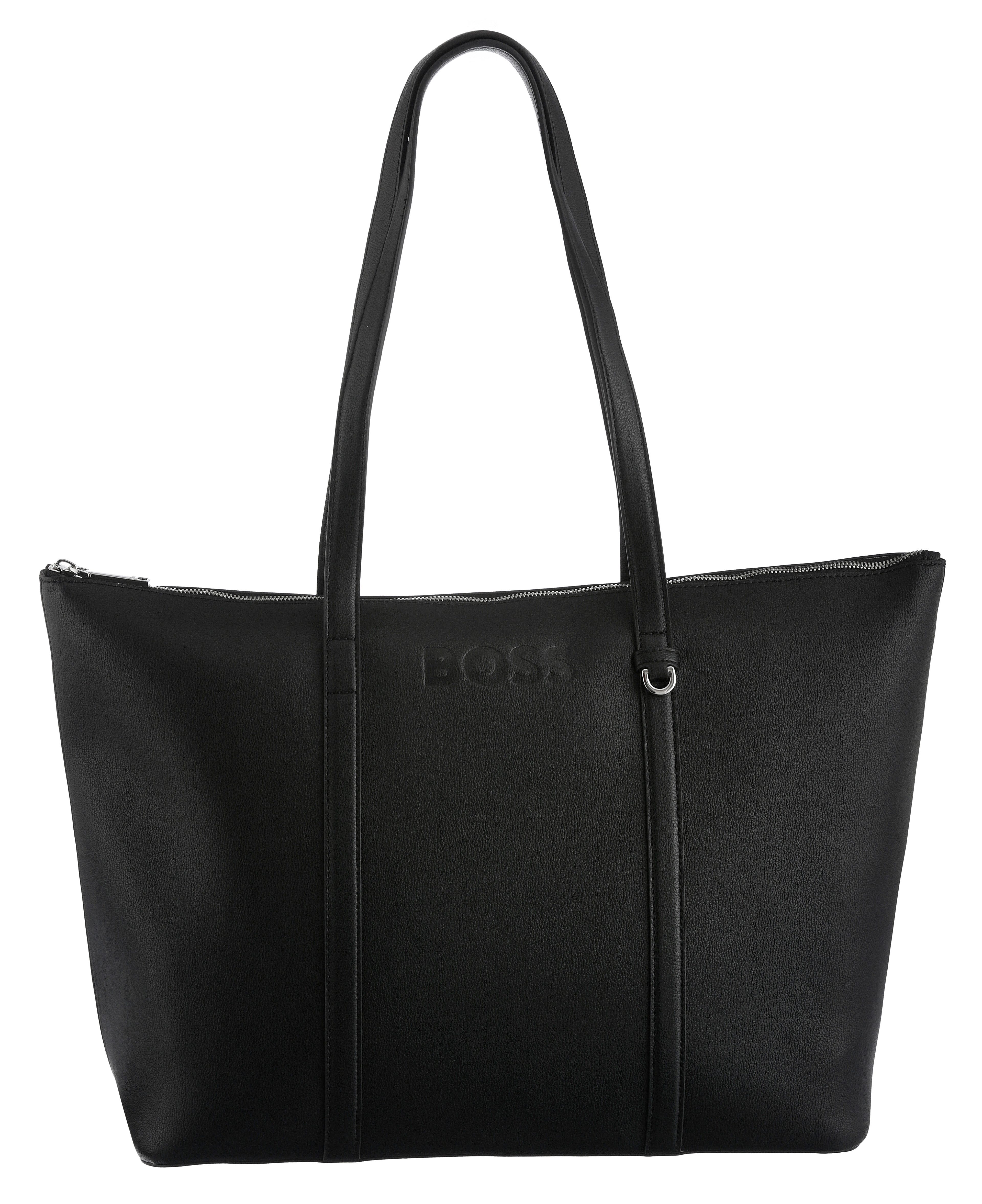 Die BOSS Henkeltasche "Addison New Tote" ist ein Accessoire, das moderne Eleganz mit praktischer Vielseitigkeit vereint. Hergestellt aus einer hochwertigen Mischung aus Lederimitat und Textil, bietet diese Tasche nicht nur eine ansprechende Optik, sondern auch die Strapazierfähigkeit, die für den anspruchsvollen Alltag benötigt wird. Mit beeindruckenden Maßen von ca. 48 cm in der Breite, 30 cm in der Höhe und 19 cm in der Tiefe ist die "Addison New Tote" großzügig dimensioniert, um all deine Essentials und mehr stilvoll zu verstauen. Das geräumige Hauptfach mit Reißverschluss sorgt dafür, dass deine Sachen sicher und organisiert bleiben, egal ob du im Büro, beim Einkaufen oder auf Reisen bist. Das Design der BOSS Henkeltasche "Addison New Tote" strahlt zeitlose Raffinesse aus und ist dabei universell kombinierbar, um deinen individuellen Stil zu unterstreichen. Die klaren Linien und das subtile Markendetail verleihen der Tasche ein elegantes Finish, das jedes Outfit aufwertet. Diese Henkeltasche ist mehr als nur praktisch – sie ist ein modisches Statement, das deinen Sinn für Stil und Qualität widerspiegelt. Egal, ob du dich für eine lässige oder formelle Garderobe entscheidest, die "Addison New Tote" ergänzt jeden Look mit einer edlen Note.