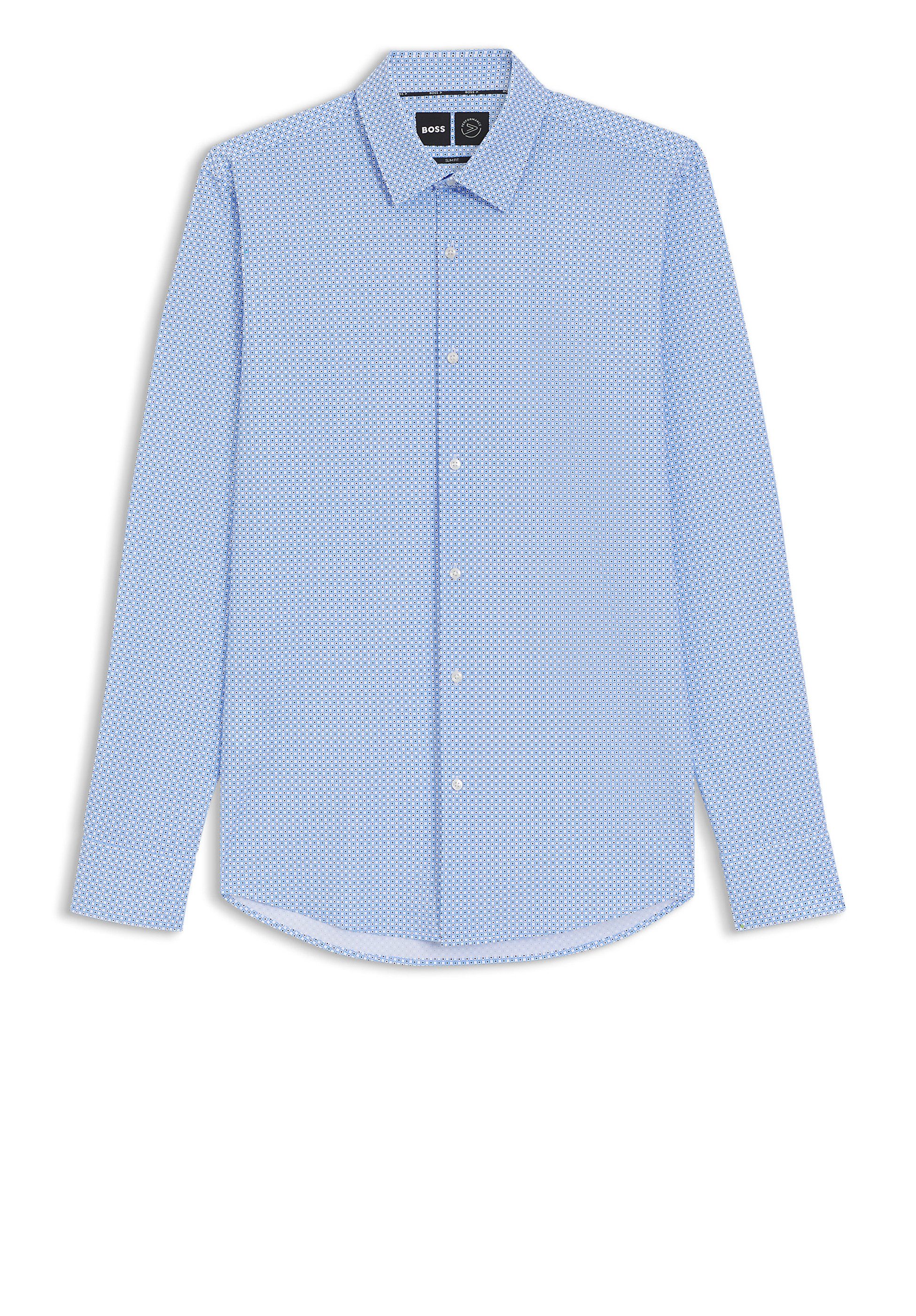 Das BOSS Menswear Hemd mit cleaner Passform und zeitgemä,ß,em Print ist dank des hohen Elasthan-Anteils besonders bequem.