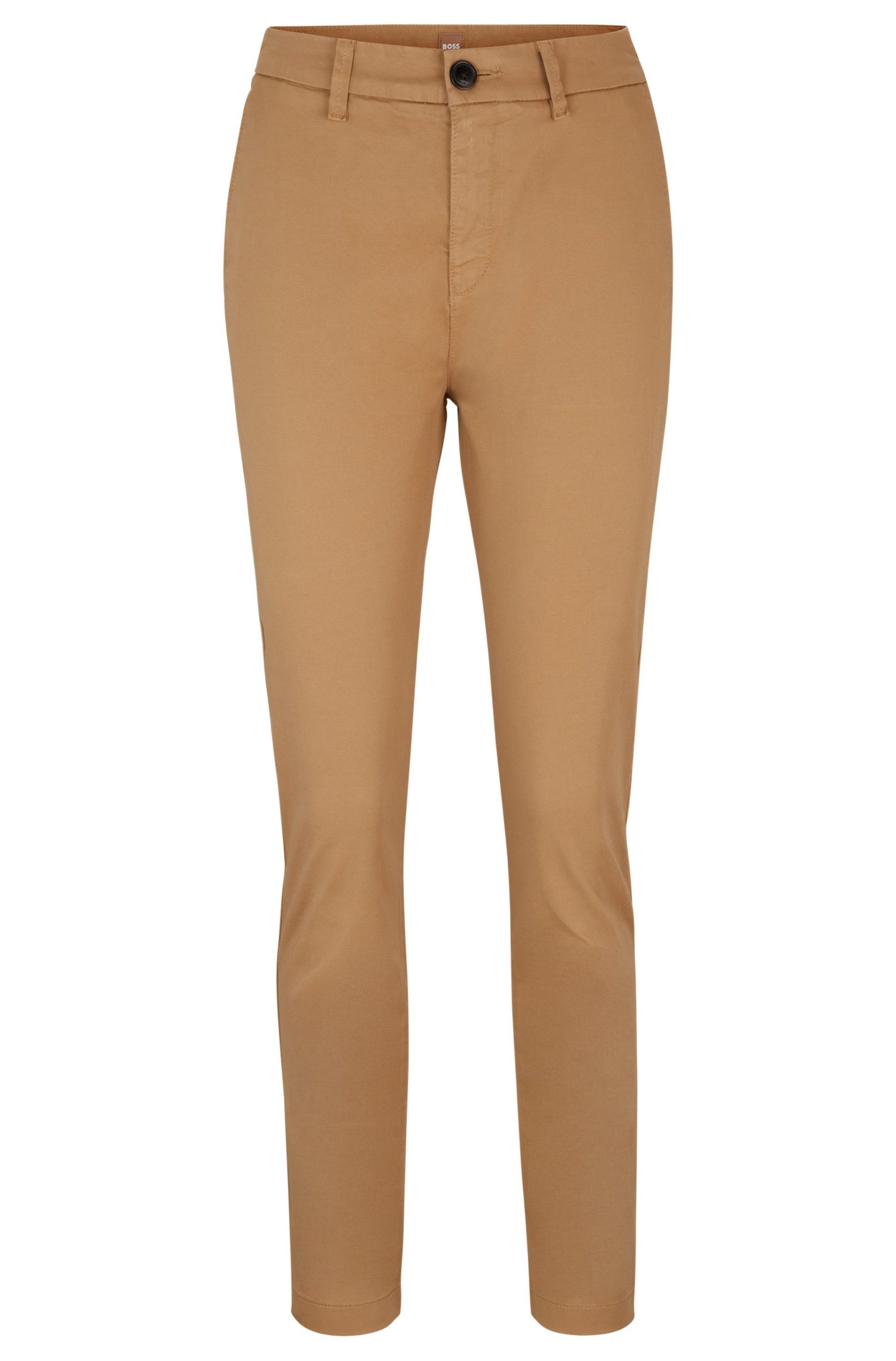 Du bist auf der Suche nach einer vielseitigen Hose für Deinen Casual-Look? Die Hose Tachini könnte genau das sein, wonach Du suchst. Sie ist ein echtes Statement-Piece, das Deinem Outfit einen stilvollen Touch verleiht. Mit ihrem unifarbenen Design lässt sie sich mühelos mit verschiedenen Stilen kombinieren - von lässig bis hin zu elegant. Die Knöchellänge sorgt für eine moderne Silhouette, während die mittlere Bundhöhe einen komfortablen Sitz garantiert.Die Hose Tachini ist mehr als nur eine durchschnittliche Baumwollhose. Sie besteht aus elastischem Baumwoll-Satin, der angenehm auf der Haut liegt und für optimalen Tragekomfort sorgt. Das Obermaterial besteht zu 97% aus Baumwolle und zu 3% aus Elasthan, was der Hose eine angenehme Elastizität verleiht, ohne ihre Form zu verlieren. Die hochwertige Verarbeitung und das ansprechende Material machen die Hose zu einem langlebigen Kleidungsstück, das Du immer wieder gerne tragen wirst.Das Design der Hose Tachini ist schlicht, aber keineswegs langweilig. Der gerade geschnittene Style mit konischem Beinverlauf und Cropped-Длина sorgt für eine schmeichelhafte Passform, die Deine Figur vorteilhaft in Szene setzt. Die Unifarbe ist vielseitig kombinierbar und passt zu fast jedem Outfit - egal, ob Du einen entspannten Tag zu Hause planst oder einen Ausflug in die Stadt machst.Obwohl die Hose Tachini für Casual-Looks entworfen wurde, lässt sie sich durchaus auch zu formelleren Anlässen tragen. Kombiniere sie einfach mit einem schicken Top und eleganten Schuhen für einen raffinierten Look. Mit dieser Hose bist Du immer bestens gekleidet und bereit für jede Gelegenheit. Casual Hose mit unifarbenem Design Knöchellange und mittlere Bundhöhe für hohen Tragekomfort Aus elastischem Baumwoll-Satin gefertigt Gerader Schnitt mit konischem Beinverlauf und Cropped-Длина
