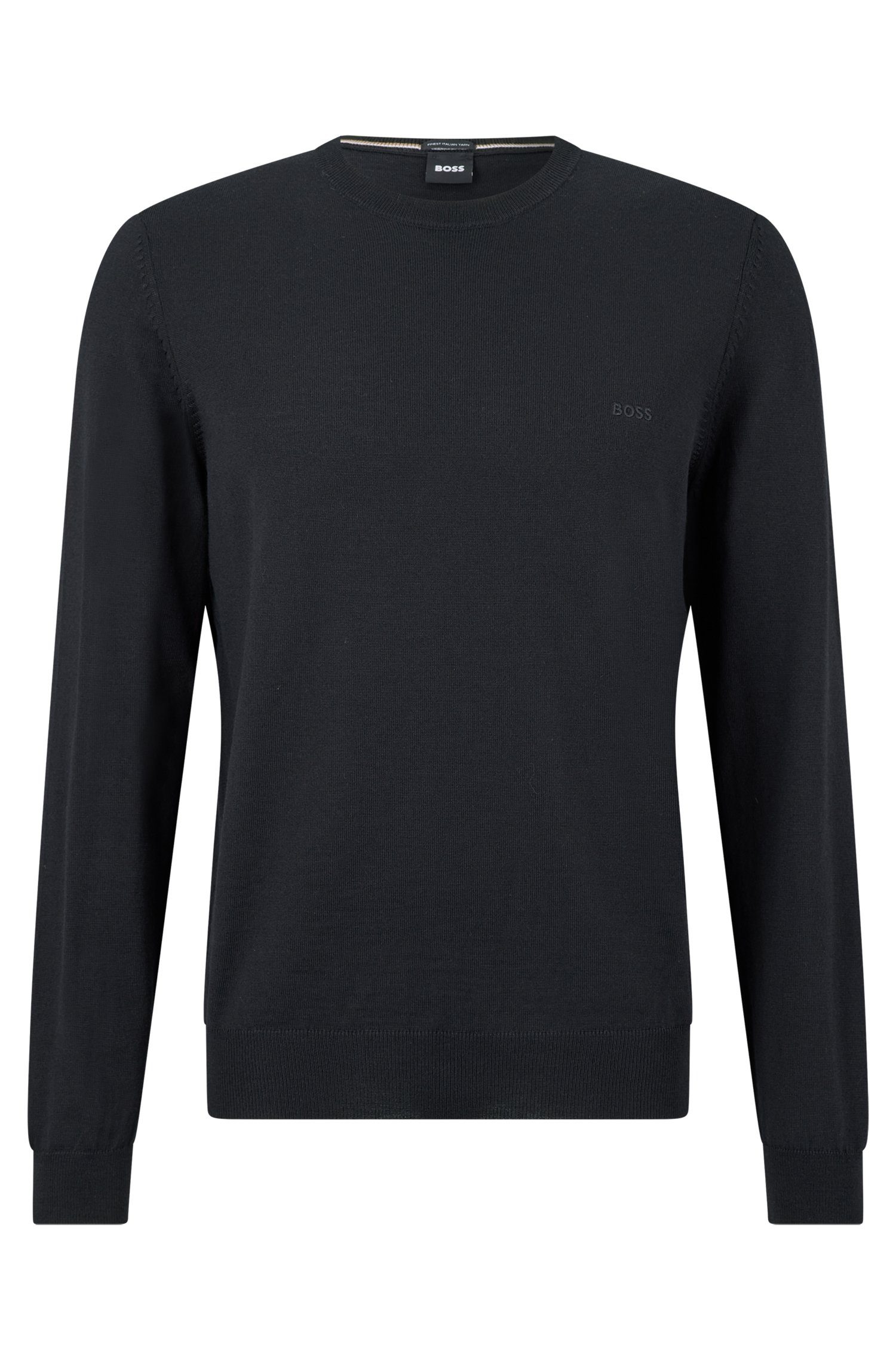 Vielseitig kombinierbarer BOSS Pullover mit Rundhalsausschnitt. Der komfortable Layer ist aus Schurwolle gefertigt und mit einem BOSS Logo bestickt. Dieses Produkt wird mit nachhaltiger gewonnener Wolle gefertigt. Эко-товарer gewonnen bedeutet für uns mulesingfrei unter Einhaltung der Fünf Freiheiten für das Tierwohl.
