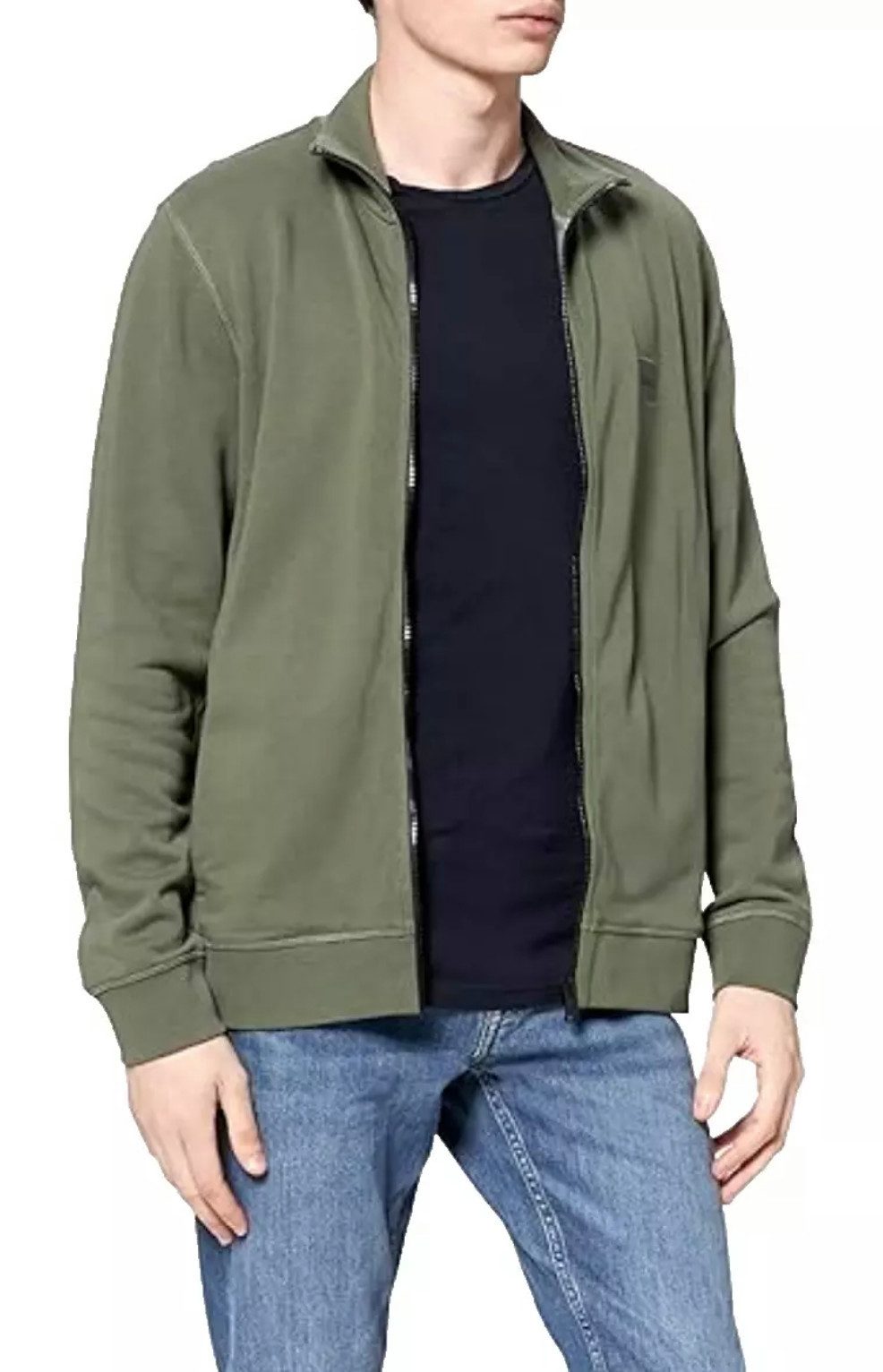 Die BOSS Zestart 1 Sweatjacke bietet höchsten Tragekomfort und Stil. Gefertigt aus reinem Baumwoll-French-Terry, überzeugt diese Jacke durch einen lässigen Schnitt und ein angenehm weiches Material. Die Jacke ist mit einem gerippten Stehkragen, durchgehendem Reißverschluss und seitlichen Eingrifftaschen ausgestattet. Ein Logo-Patch auf der Brust und gerippte Abschlüsse an Ärmeln und Saum runden das Design ab. Diese Jacke ist ein vielseitiger Begleiter und perfekt für entspannte Looks. Zusätzlich unterstützt BOSS mit diesem Produkt die Cotton made in Africa-Initiative und zeigt damit sein Engagement für Produktion.