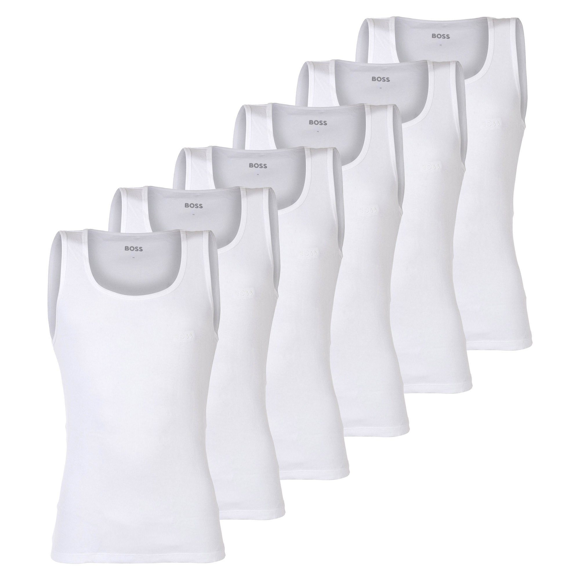 Unterhemden für Herren von der Marke BOSS im praktischen 6er Pack. Geripptes Tank Top mit Rundhalsausschnitt mit kleinem Logo auf der Brust.