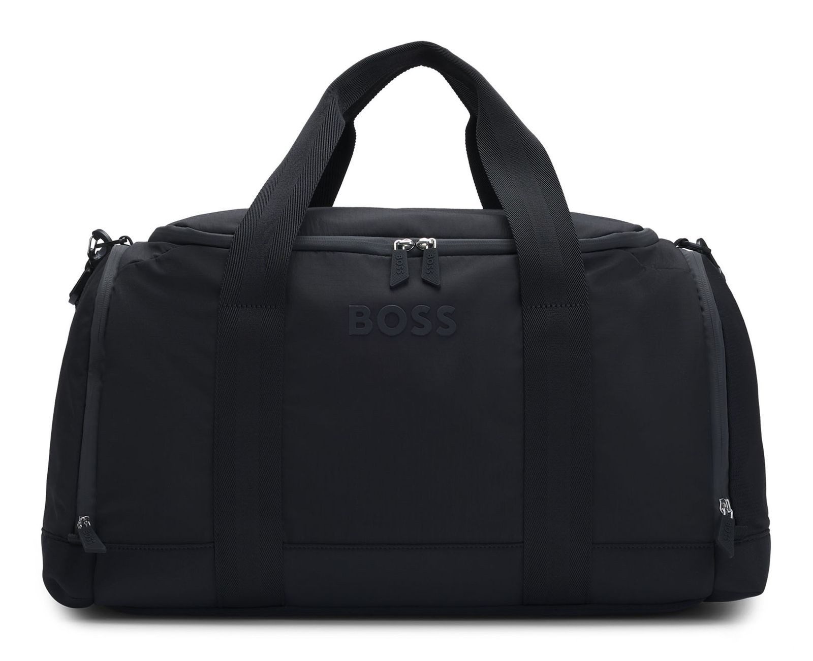 Die klassische, moderne und hochwertige BOSS Reisetasche kann Ihr perfekter Begleiter für eine nächste Kurzreise oder Wochenendausflug sein. Außerdem wird sie Ihnen durch das hochwertig verarbeitete Material lange zur Seite stehen. Durch den Schulterriemen steht es Ihnen offen, ob Sie die Tasche locker über der Schulter oder klassisch an den Henkeln tragen wollen. Die BOSS Styven Holdall begeistert direkt!
