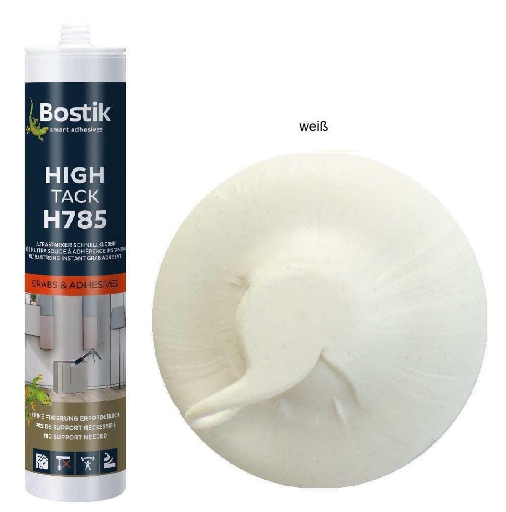 Bostik H785 High Tack, Farbe weiß, 290ml Kartusche, 1K Hybrid Klebstoff. Montageklebstoff extrem stark. Für Verklebungen im Innen- und Außenbereich auf Untergründen aus Holz, Stein, Beton, Metall und den meisten Kunststoffen. Extrem hohe Anfangshaftung. Extrem hohe Endhaftung. Auch auf feuchten Untergründen.