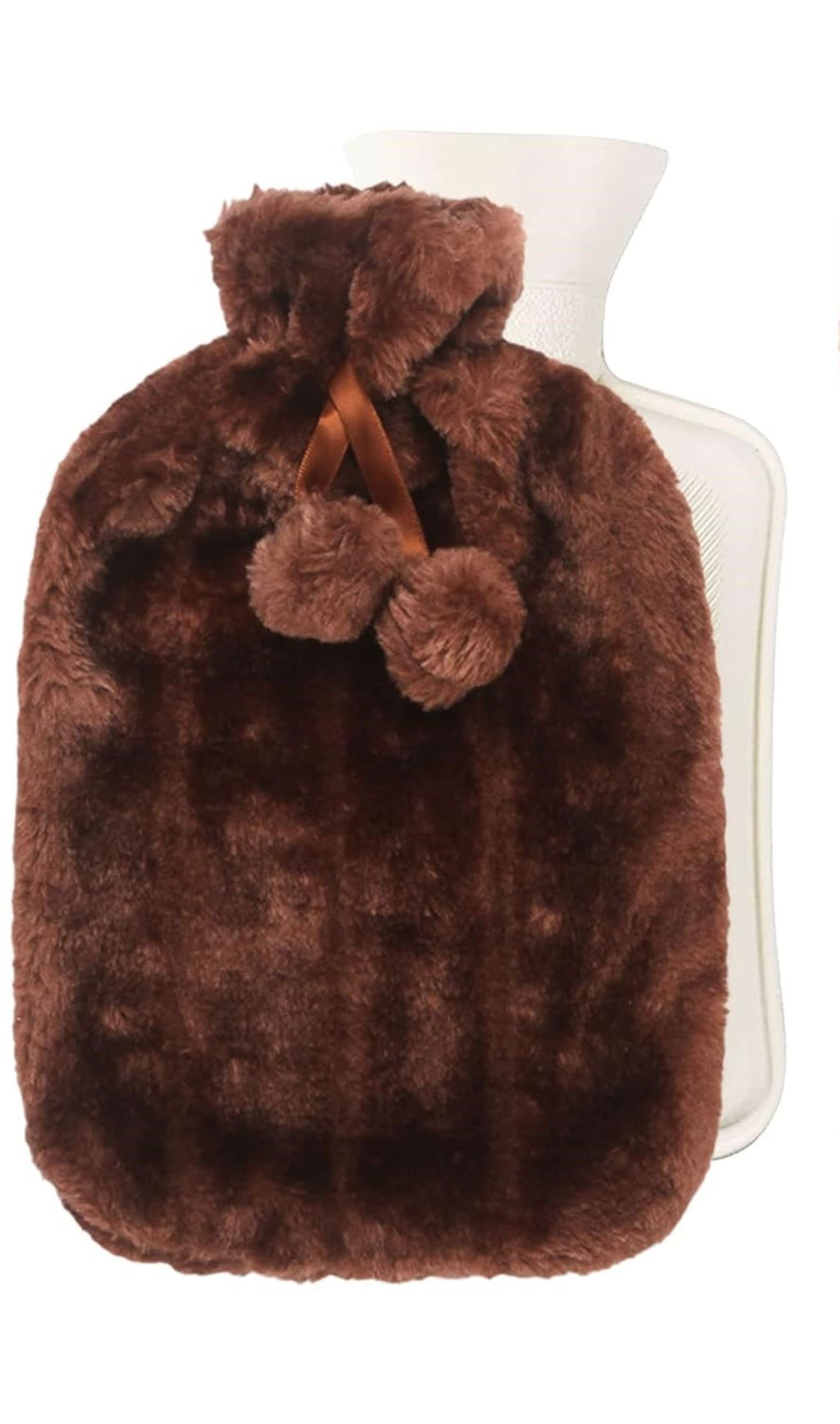 FLAUSCHIGE OPTIK: Mit putzigen Bommel | langlebige PVC Flasche | keine Verbrühungsgefahr durch Flauschbezug