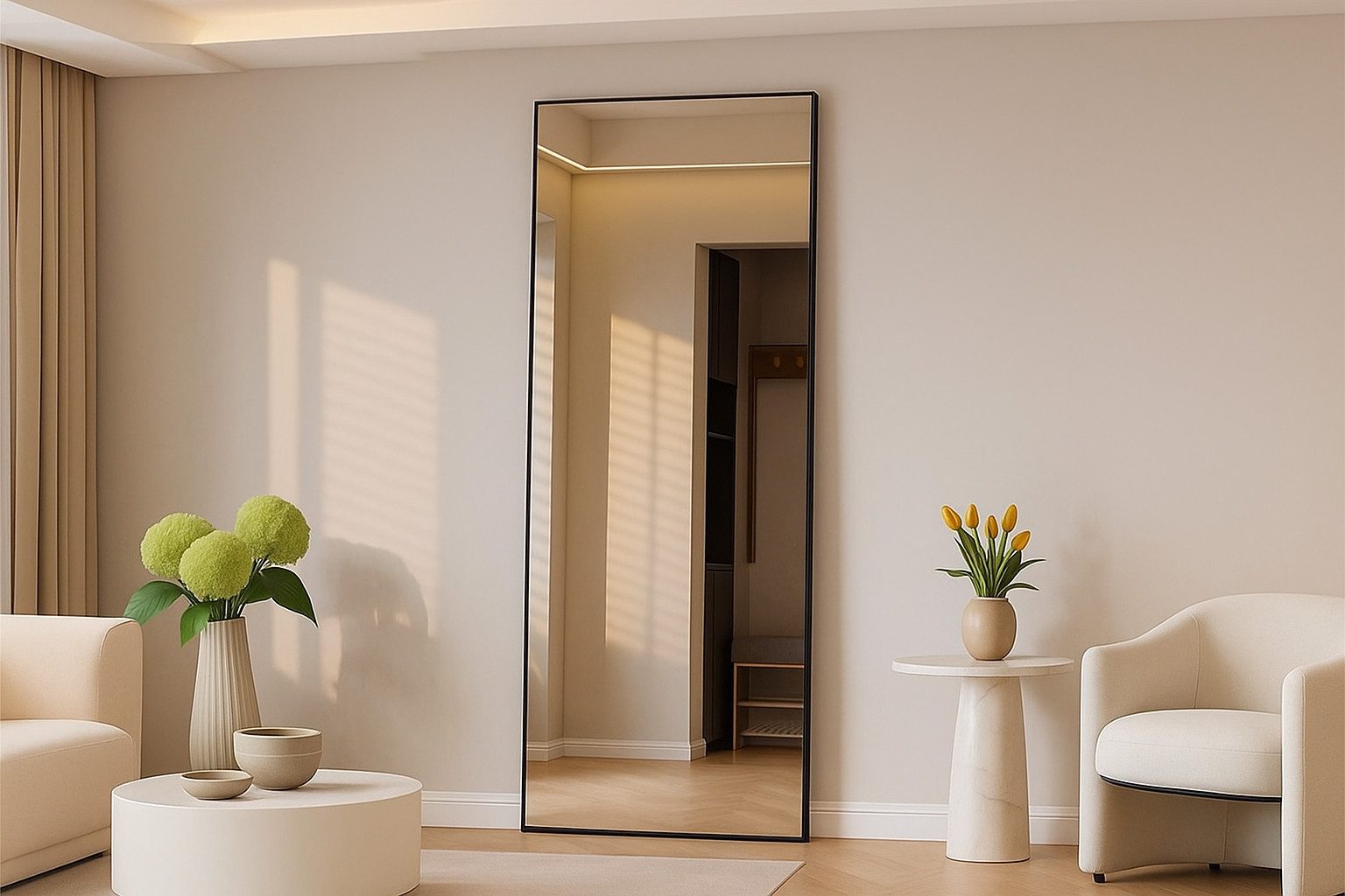 Nichts lockert einen Raum so sehr auf wie ein großzügiger Spiegel! Der Dalton Mirror ist rechteckig und wird von einem dünneren schwarzen Rahmen umgeben. Die Umrahmung ist ein schönes Detail, das leicht mit anderen Wanddekorationen kombiniert werden kann. Hängen Sie ihn einfach auf oder lehnen Sie ihn allein an die Wand, um neue Dimensionen in Ihrem Zuhause zu eröffnen!