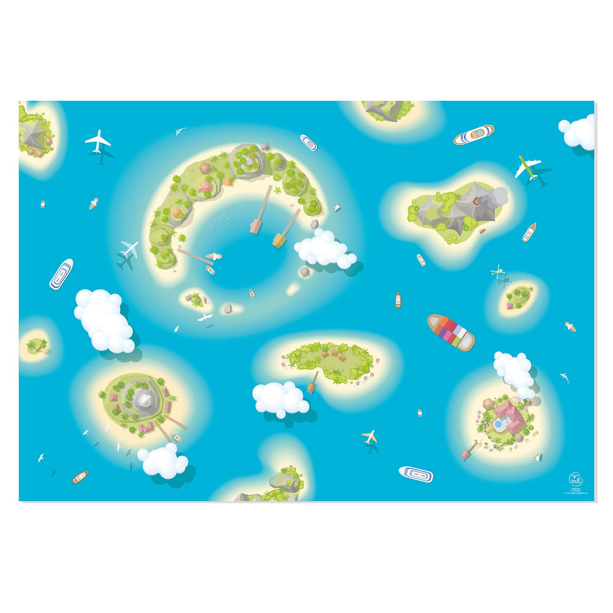 Mit diesem Papier kommen große und kleine Strandkinder in Urlaubsstimmung und Entdeckungslaune! Die Vogelperspektive zeigt Inseln, Schiffs- und Flugverkehr und sogar ganz detailreich Sonnenschirme, Liegen und Pflanzen am Strand. Das weiße, seidige Feinstpapier kommt als Bogen in 100 % Recycling-Qualität. Mit einer Grammatur von 115 g eignet es sich nicht nur zum Verpacken, sondern auch zum Basteln und Dekorieren. Zudem macht es sich prima als Poster an der Wand! Eine passende Grußkarte ist auch erhältlich, aber nicht beim Geschenkpapier im Lieferumfang enthalten. Maße: 69 x 48 cm