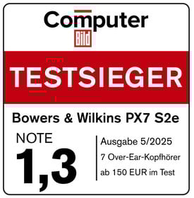 Der Bowers&Wilkins PX7 S2E erzielt im Vergleichstest des Magazins „Computer Bild“ mit sechs weiteren Over-Ear-Kopfhörern ab 150 Euro das Gesamtergebnis „sehr gut (1,3)“. Die „sehr gute“ Soundwiedergabe ist sauber, „ausgewogen“ und bietet viele Details sowie kräftige Bässen. Das Gerät ist mithilfe der Tasten und am Smartphone sehr einfach zu bedienen. Die „sehr gute“ Mobilität glänzt u. a. mit einem sehr zuverlässigen Noise-Cancelling, sehr geringem Gewicht und einer „sehr langen“ Akkulaufzeit von „40:19 Stunden“. Die Polster sind „bequem“. Außerdem erhält das „sehr gute“ Zubehör die Bestnote „1,0“ und bietet ein Kunststoff-Case sowie ein USB-Klinke-Adapterkabel und ein USB-Ladekabel. Insgesamt ist das Modell der „TESTSIEGER“.