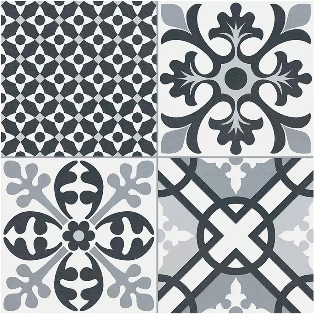 Trendfliesen, Boden- und Wandfliesen im Vintage-Stil. Gefühlter Jugendstil pur. Unterschiedliche schwarz-weiss-graue Muster prägen diese Deko Fliesenserie Vintage BLACK. Es gibt derzeit 76 verschiedene Muster. Diese unterschiedlichen Muster lassen sich (je nach Geschmack) ideal mit anderen Böden und Materialen, kombinieren – egal ob zu Holzoptik-, Betonoptik- oder auch rustikalen Materialien. Diese Fliesen sind Dein echter Hingucker. Perfekt geeignet für kleine Updates und Upgrades deiner Wohnräume – ohne direkt alles zu renovieren. Somit ideal für die Verlegung in einem Gäste-Bad, den Fliesenspeigel in der Küche, Eingangsbereiche oder prominente Stellen.