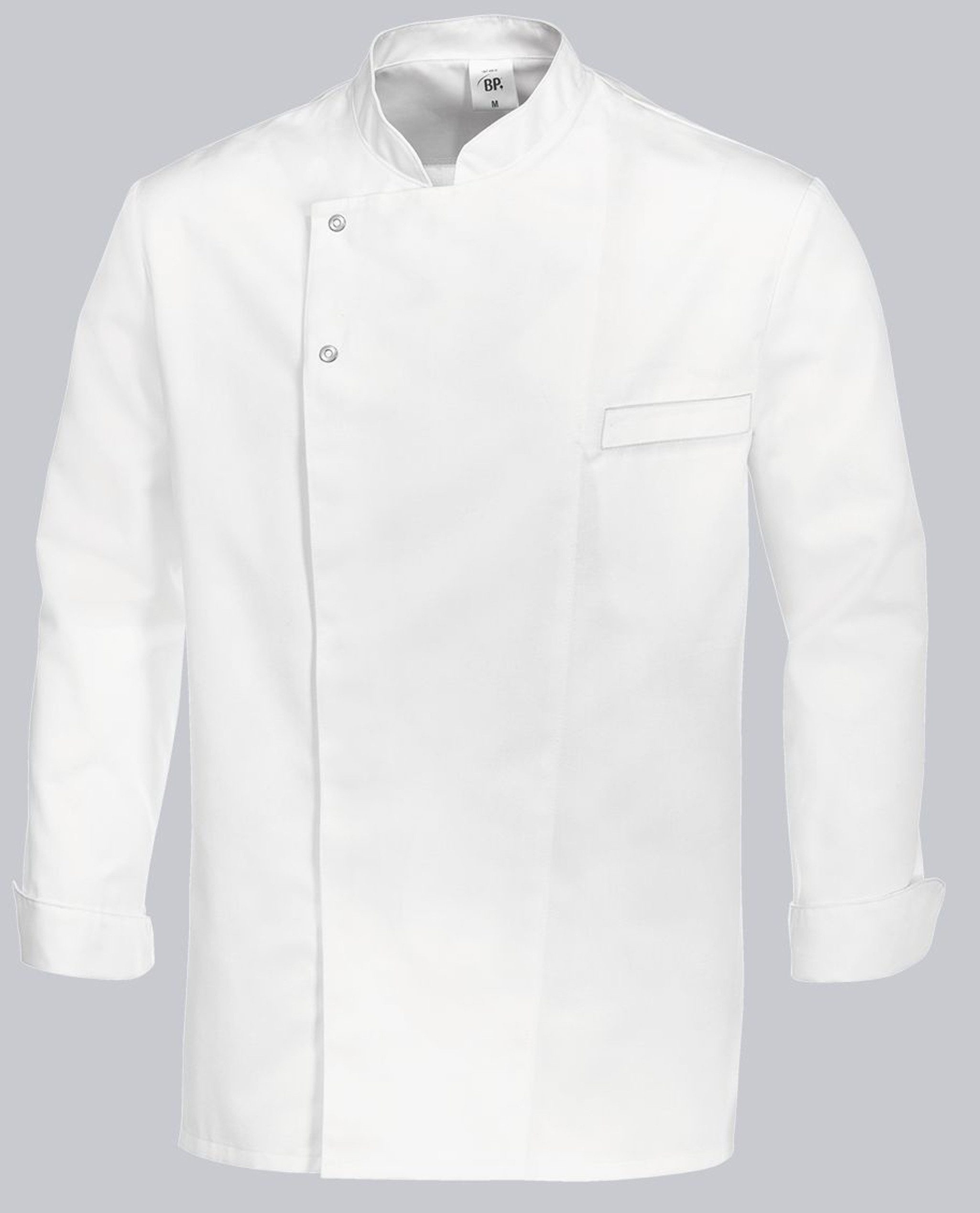 BP Kochjacke für Herren Robust, funktional und stilvoll – dieses Oberteil ist die perfekte Kombination aus Langlebigkeit und modernem Design. Highlights: Edelstahldruckknöpfe: Die oberen 2 Knöpfe bleiben sichtbar und setzen dezente Akzente. Geräumige Brustleistentasche: Praktisch und ideal für kleine Utensilien. Strapazierfähiges Mischgewebe: Robust und pflegeleicht, perfekt für den täglichen Einsatz. Normale Passform: Garantiert Komfort und Bewegungsfreiheit. Впередe Details: Langarm mit Manschetten: Für ein klassisches und vielseitiges Design. Stehkragen: Modern und funktional, verleiht einen gepflegten Look. Verdeckte Druckknopfleiste: Stilvoll und schlicht, mit zwei sichtbaren Knöpfen. Belüftungsöffnungen: Bessere Luftzirkulation für ein angenehmes Tragegefühl. Dieses Oberteil vereint Funktionalität mit einem klaren, professionellen Look und ist ideal für den Arbeitsalltag oder Freizeitaktivitäten.