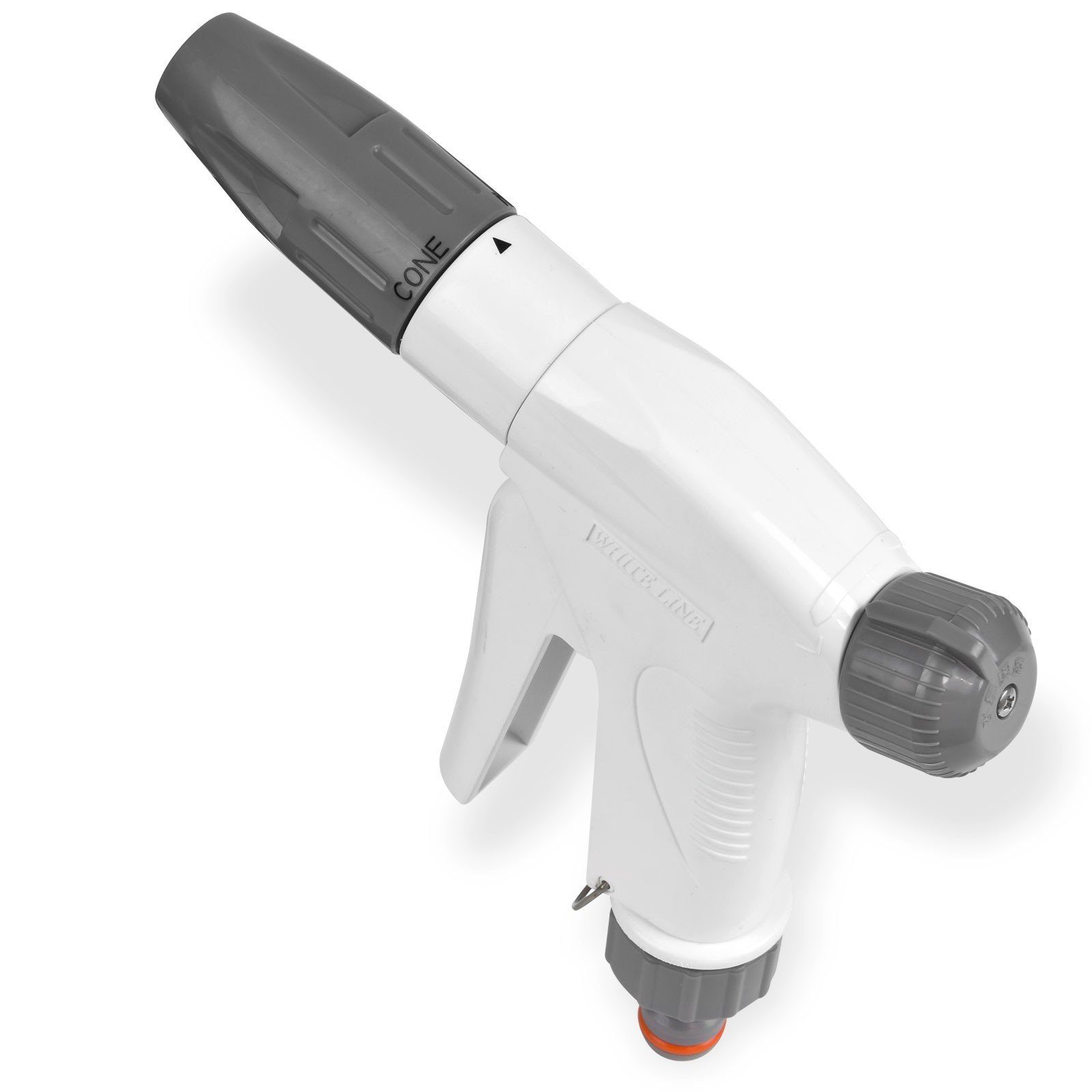 2-fach einstellbare Spritzpistole. Diese hat eine Wasser-Flusskontrolle und eine stufenlos verstellbare Strahldüse. Die Spritzpistole wird aus hochschlagfestem ABS Kunststoff hergestellt. Die Qualität wurde durch Luftprüfung an einer Druckmaschine getestet. 2 Jahre Garantie.