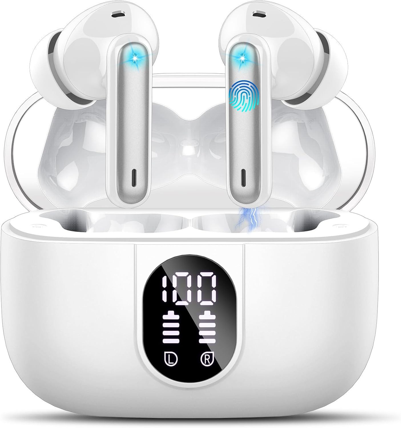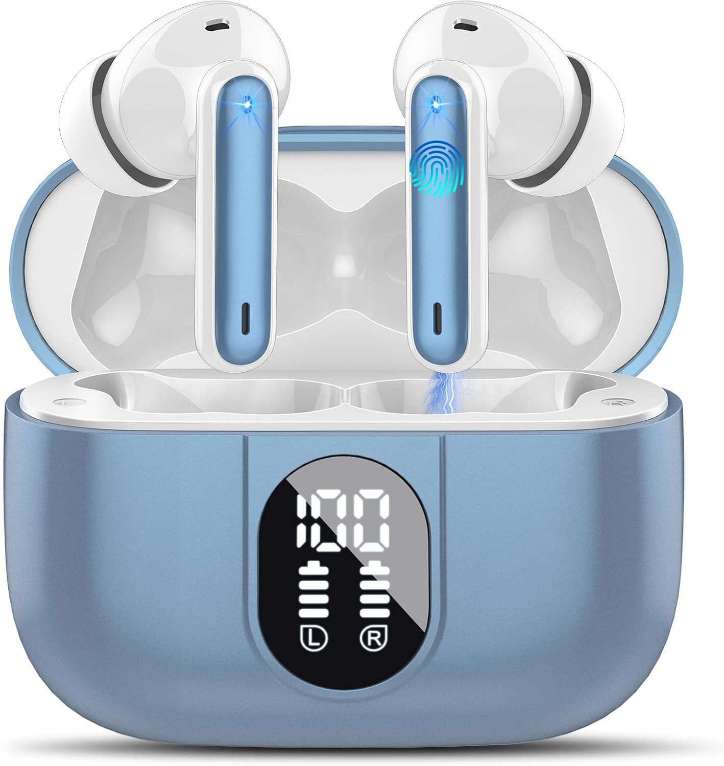 Netzwerkstandard | Deep Bass mit 4 ENC Mic, 40Std Spielzeit,Wireless Earbuds mit LED-Anzeige, Touch Control |
