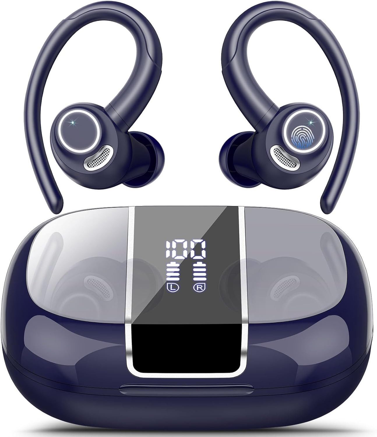 Netzwerkstandard | Kopfhörer Kabellos Bluetooth 5.3 mit Ohrhaken, 48Std 3D Stereo In Ear Kopfhörer mit ENC Mic, LED-Anzeige, Touch Control, Ohrhörer IP7 Wasserdicht |