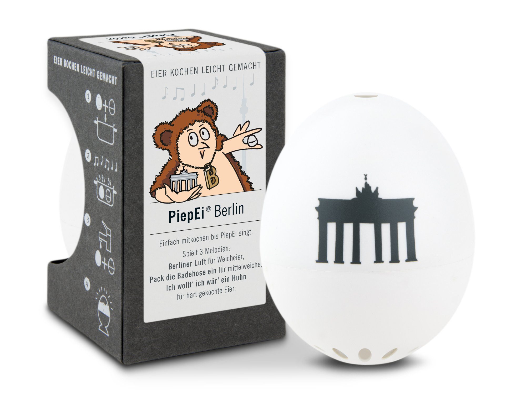 Für die Weicheier gibt es „Berliner Luft“. Fast wie an der Theke. Natürlich bekommt auch die Hauptstadt eine eigene PiepEi Edition, denn auch Deutschlands größte Metropole schreit nach perfekt gekochten Frühstückseiern.   Zu weich, zu hart – aber nie auf den Punkt. Perfekt gekochte Eier sind eine Wissenschaft für sich. Für das PiepEi Berlin aber kein Problem. Einfach mit den Eiern lagern, zusammen mit den Eiern kochen und warten bis das PiepEi Berlin singt. Egal mit welcher Wassertemperatur man startet und egal auf welcher Höhe man kocht, das Ei wird perfekt (FAQ). Auch auf dem Festland.   Richtig jute Eier aus Berlin. Ein schönes Geschenk für alle Berliner und ja, wir verkaufen auch an Zugezogene.
