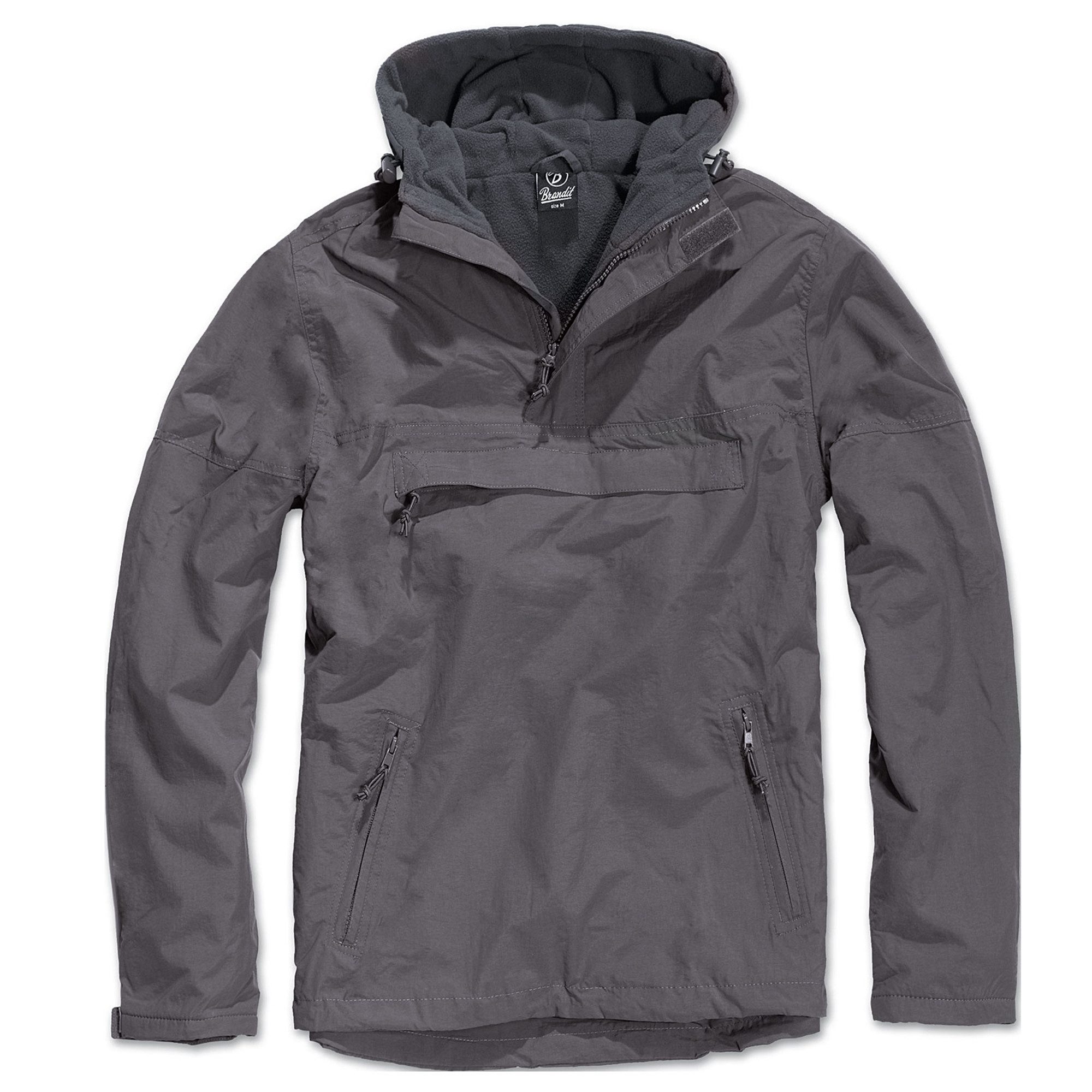 Einfach überziehen und Sie sind geschützt vor Wind und Wasser. Der Brandit Windbreaker verfügt über ein weiches, atmungsaktives Fleecefutter, das Obermaterial ist wind- und wasserabweisend und die Ärmelabschlüsse lassen sich per Klettverschluss individuell anpassen. Durch den seitlichen, extralangen Reißverschluss ist ein schneller Ein- und Ausstieg kein Problem. Ihre Dinge für unterwegs lassen sich einfach in der verdeckten Brusttasche oder in den zwei schrägen Bauchtaschen verstauen.