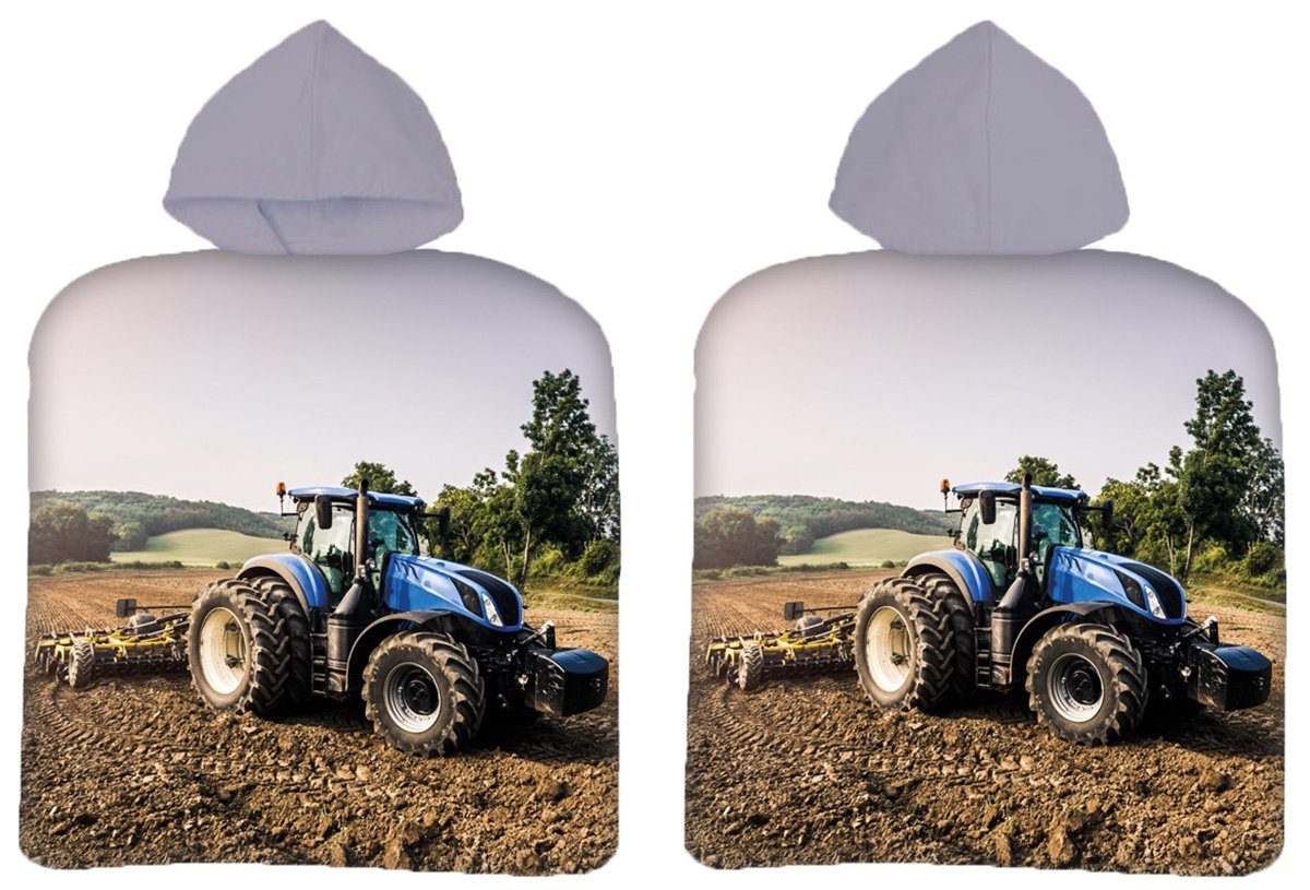 Ob Schwimmbad, Strand, See oder Planschbecken, dieser Badeponcho mit dem Traktor auf dem Feld darf nirgendwo fehlen! Er ist ideal, um kleine und große Kinder nach dem Bad im kühlen Nass, wieder trocken zu bekommen. Und wenn nach dem Toben im Wasser eine Pause angesagt ist, dann ist dieser Poncho genau passend, um sich darin einzumummeln oder es sich darauf gemütlich zu machen. Sehr gut für den Urlaub geeignet! Der Badeponcho ist das ideale Geschenk für Ostern, zum Geburtstag oder einfach zu anderen Anlässen und eignet sich wunderbar für den Strand, Schwimmbad, Hallenbad, Urlaub oder für Zuhause. Auf der Vorder- und Rückseite des Badeponchos ist ein großer blauer Traktor auf dem Feld zu sehen. Der Traktor beackert gerade das mit seinen Anhänger. Im Hintergrund sind Berge mit Wald und grüner Wiese zu sehen. Die Maschine ist der absoluter Hingucker ist.