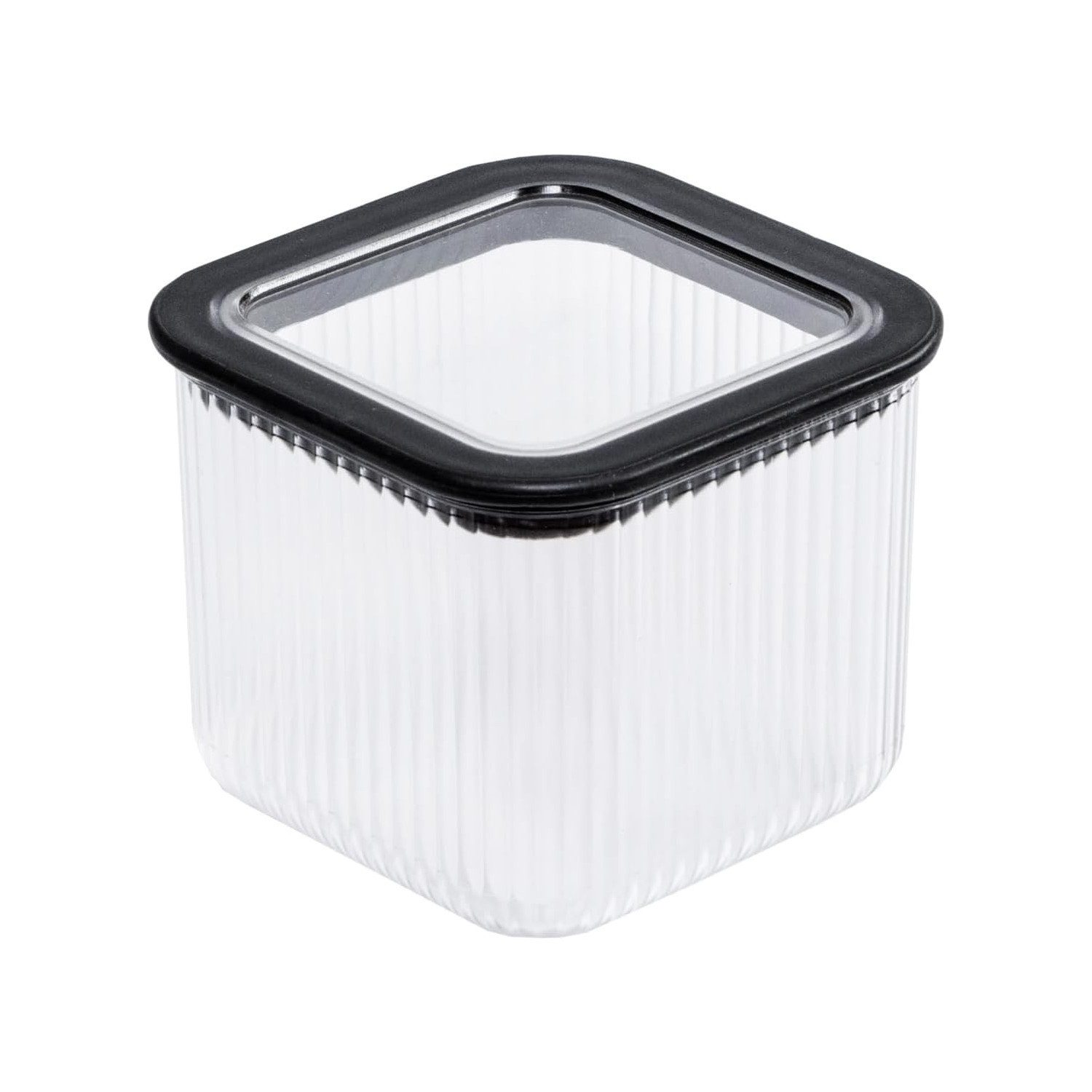 Der edel wirkende Behälter ist mit originell anmutenden Rillen verziert und verfügt über einen luftdichten, transparenten Deckel, der es ermöglicht, den Inhalt zu kontrollieren.