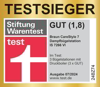 Die Braun CareStyle 7 IS 7266 VI erzielt im Vergleichstest des Magazins „test“ der „Stiftung Warentest“ mit zwei weiteren Bügelstationen mit Druckboiler das Gesamtergebnis „GUT (1,8)“. Die „gute“ Bügelleistung überzeugt auf jeglichen Textilien. Die Bügeltemperatur bleibt sehr stabil und die Dampfmenge, die Dampfdauer, die Sprühfunktion sowie das Gleiten der Bügelsohle sind jeweils „sehr gut“. Außerdem ist das Gerät einfach zu bedienen. Insgesamt ist das Modell der „TESTSIEGER“.