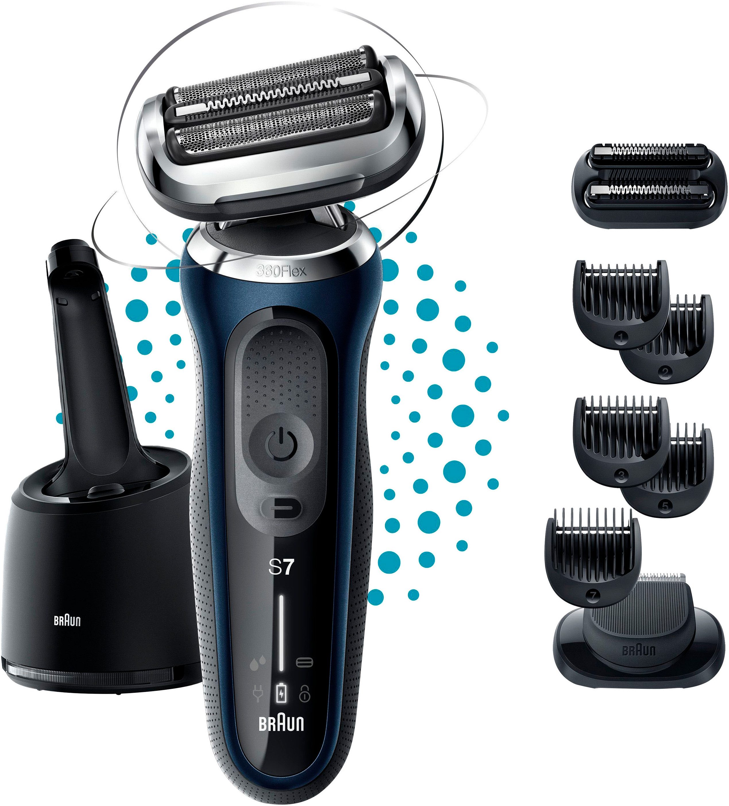 Lieferumfang | 3-Tage-Bart-Trimmer-Aufsatz Barttrimmer-Aufsatz Elektrorasierer Netzteil Reinigungsstation Reiningungsbürste Reise-Etui |