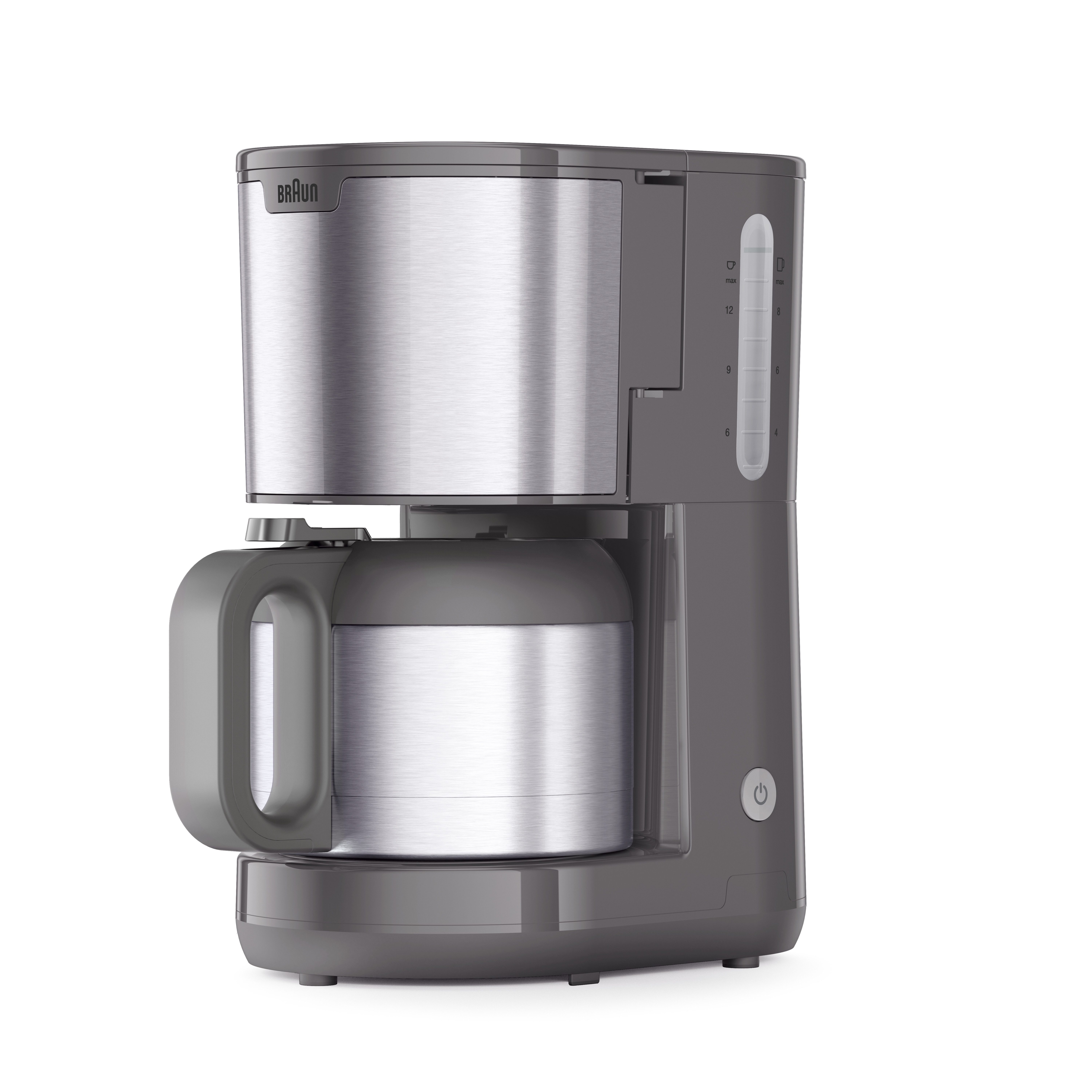 Genieße das volle Aroma und die perfekte Temperatur deines Kaffees länger mit der 1,2 l fassenden Thermoskanne von Braun. Dank des doppelwandigen Isoliersystems hält die Thermoskanne den Kaffee auch nach 2 Stunden > 70 °C heiß.* * berechnet bei voller Kanne