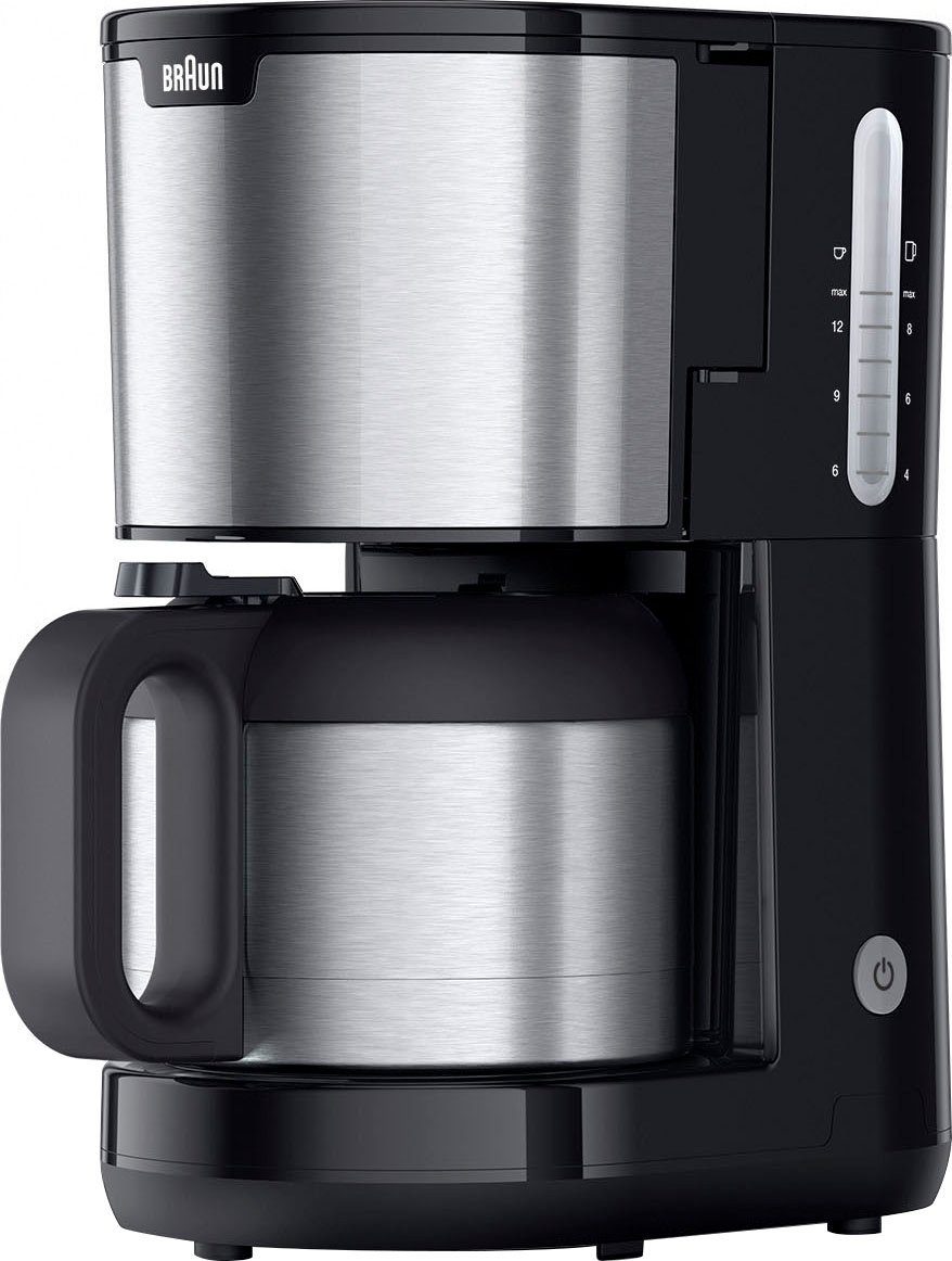Braun Filterkaffeemaschine PurShine KF1505 WH mit Thermokanne, 1,2l Kaffeekanne, Papierfilter, 1000W, automatische Abschaltung, herausnehmbarer Filterkorb, Edelstahl