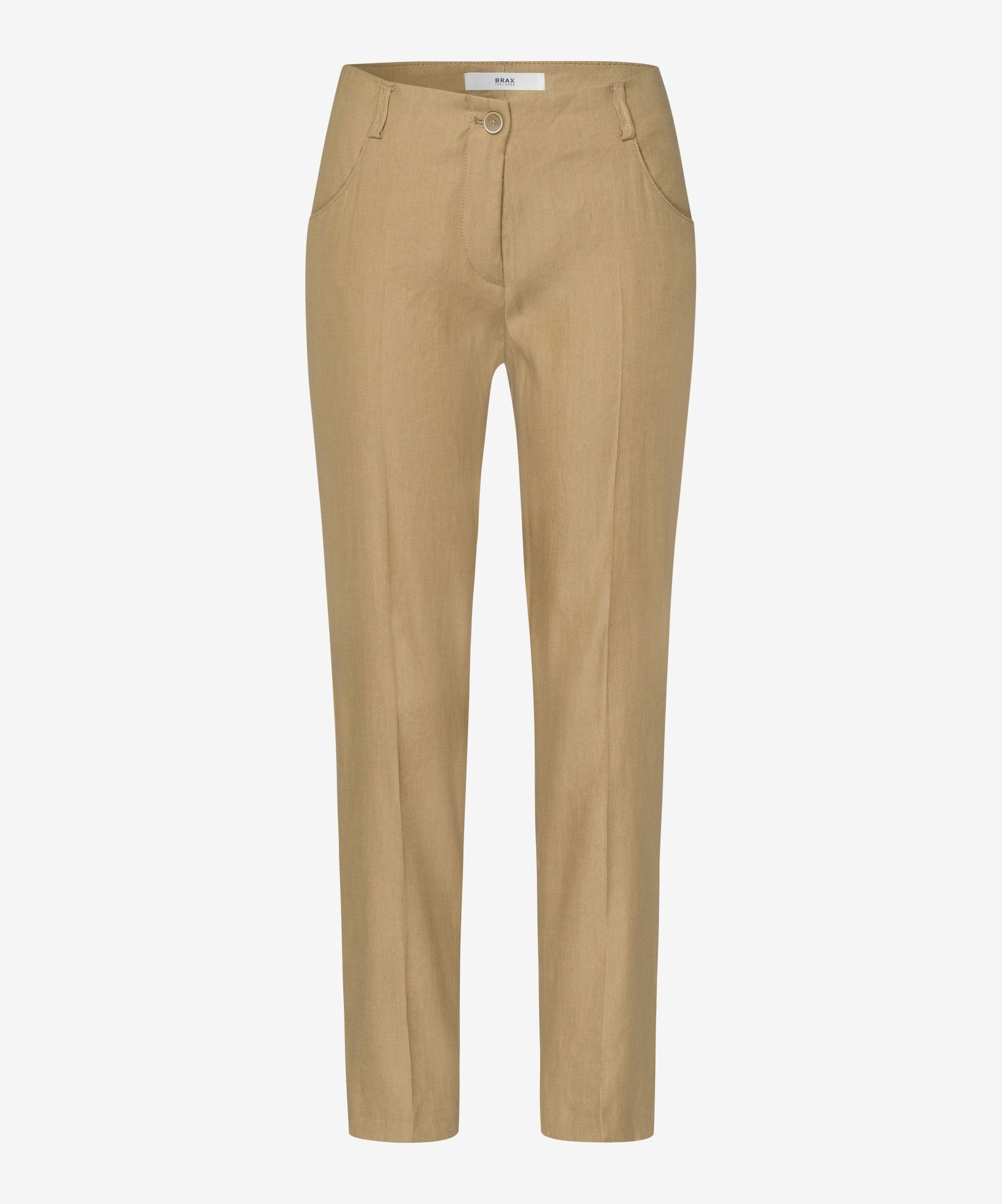 Für Damen ist der Style MARON S ein Trend-Item. Ob smart mit Loafern oder leger mit Sneakern - mit der 7/8 Flatfronthose gelingt Ihnen immer ein modebewusster Look. Die Slim Fit Damenhose mit regulärer Taille bringt dank konischem Schnitt Ihre Figur optimal zur Geltung. Eine typische Optik erhält die Hose insbesondere durch das aufwendige Taschendesign. Zusätzlich ist sie mit Bügelbruch und Logo-Applikation gearbeitet. Die kühlenden und schnell trocknenden Eigenschaften machen Leinen zur First Summer Choice. Der charakteristische Knittereffekt kennzeichnet die luftige und leichte Naturfaser. Der atmungsaktive und hautfreundliche Leinenmix bietet zudem bei dieser Flatfronthose ein erstklassiges Tragegefühl.Form: * Damenhose * Chinohose * Einschubtaschen vorn * Leistengesäßtaschen mit Knopf * Verdeckter Reißverschluss * Regular Fit * Konischer Beinverlauf * Normale Leibhöhe * Schmale Fußweite * 7/8-Длина Material: * Edle Leinen-Qualität * Leinen: feste, feuchtigkeitsaufnehmende Faser mit kühlendem Effekt * Baumwolle: hautsympathisch, atmungsaktiv, strapazierfähig * Viskose: weicher Griff, geschmeidiger Fall, Leuchtkraft * Elasthan: hochelastische Faser, sorgt für mehr Bewegungsfreiheit * Leichte Qualität * Ausgezeichnete Farbbrillanz * Angenehm softer Griff Details/Verarbeitung: * Bügelbruch * Aktuelle Naturtöne * Unifarben * Smarter Look * Dezentes Label Maße: * Beininnenlänge bei Размер 38 (Inch 29): 72 cm * Fußweite bei Размер 38 (Inch 29): 32 cm * Leibhöhe: Normal * Passform: Fällt normal aus * Gewicht m²: 185 g * Unser Model trägt Размер 36 (Inch 27) und ist 177 cm groß