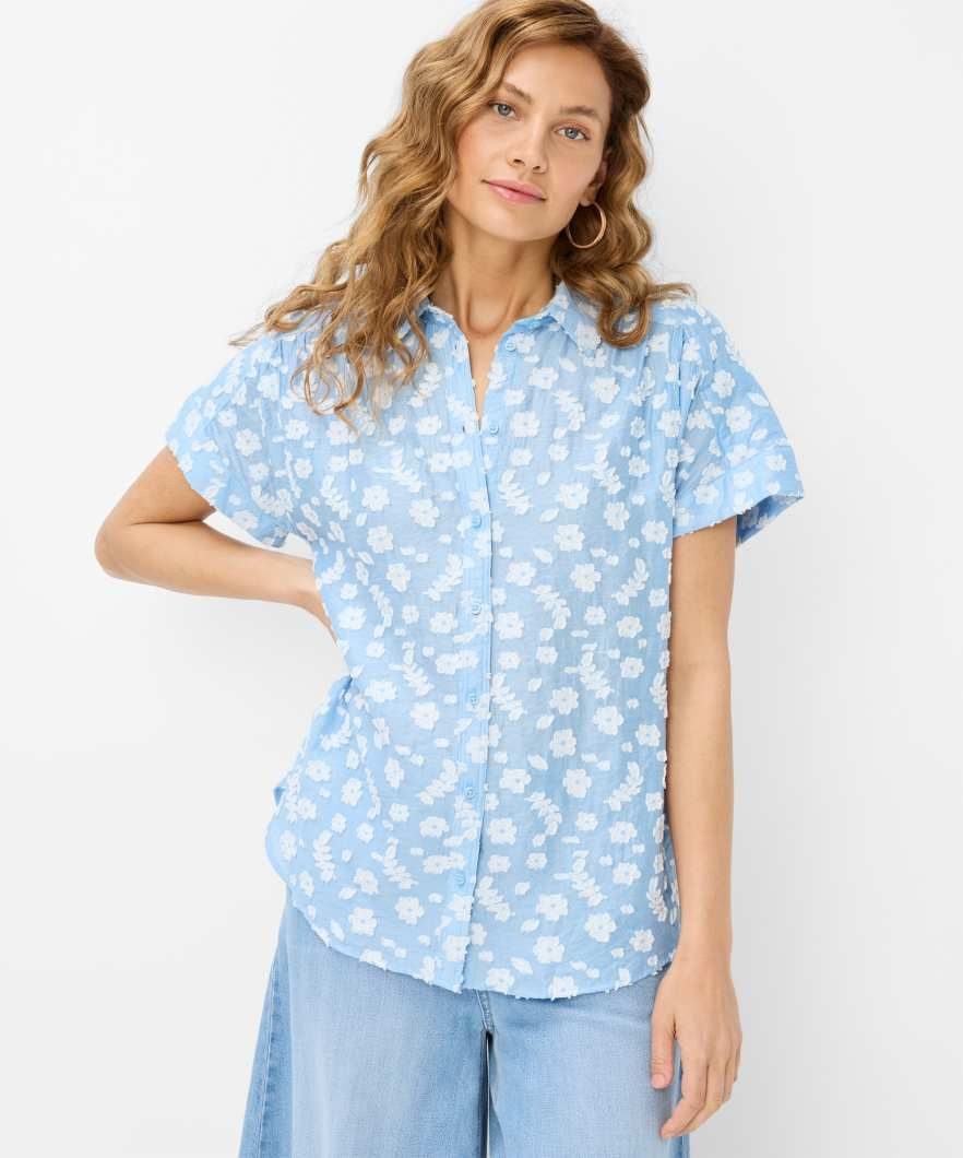 Erleben Sie die Leichtigkeit des Sommers mit der Bluse im STYLE VIV. Diese Oversized-Silhouette verleiht Ihrem Outfit einen mühelosen Chic. Zarte, aufgewebte Blumenmuster verschmelzen kunstvoll mit den eleganten Details, die durch Knöpfe und eine Schulterpasse stilvoll akzentuiert werden. Raffungen unterstreichen die feminine Note und sorgen gleichzeitig für Bewegungsfreiheit. Abgerundet wird der Look durch eine durchgehende Knopfleiste, die dem Design zusammen mit dem klassischen Hemdkragen eine moderne Vielseitigkeit verleiht. Für den Tragekomfort dieser Bluse sorgt der hochwertige Materialmix. Polyester sorgt für Strapazierfähigkeit, während Viskose für ein angenehm weiches Gefühl auf der Haut verantwortlich ist. Polyamid ergänzt die Mischung durch seine elastischen Eigenschaften, die Form und Passform unterstützen. Batist, ein fein gewebtes Gewebe, ist bekannt für seine leichte Transparenz und Atmungsaktivität, was es besonders ideal für warme Temperaturen macht. Somit ist dieser stilvolle Begleiter nicht nur ein modisches Highlight, sondern bietet auch eine hervorragende Funktionalität für heiße Sommertage.