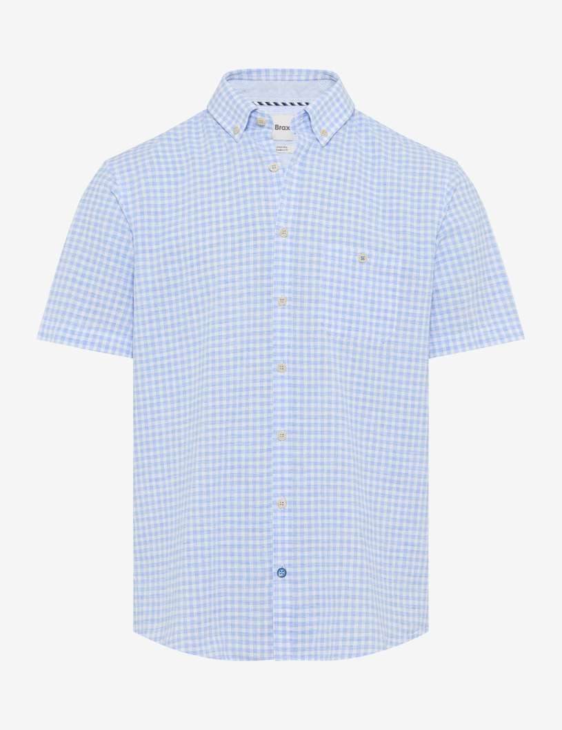 Wenn warme Sommertage nach leichten, stilvollen Outfits verlangen, ist das Herrenhemd im STYLE DAN die perfekte Wahl. In einem modernen Schnitt gestaltet, verbindet es zeitgemäßen Anspruch mit maskuliner Lässigkeit und wird so zum idealen Begleiter für Ihren gepflegten Freizeit-Look. Die taillierte Form unterstreicht die Silhouette ohne einzuengen, während der klassische Button-down-Kragen dem Kurzarmhemd eine strukturierte Note verleiht. Eine aufgesetzte Brusttasche sorgt nicht nur für optische Ausgewogenheit, sondern bietet zugleich dezenten funktionalen Mehrwert. Das feine Vichy-Karo-Muster verleiht dem Design einen frischen, aber zugleich traditionsbewussten Akzent, der durch die Knopfleiste harmonisch ergänzt wird. Die Kombination aus Baumwolle und Leinen bringt die Vorzüge beider Naturfasern in einem hochwertigen Mix zusammen: Baumwolle sorgt für weiche Haptik und angenehmen Hautkontakt, während Leinen für Atmungsaktivität und Leichtigkeit steht – perfekt für Tage, an denen Komfort an erster Stelle steht. Die bewusst unregelmäßige Slub Yarn-Struktur verleiht dem Stoff eine lebendige Textur und einen dezenten Vintage-Charakter.
