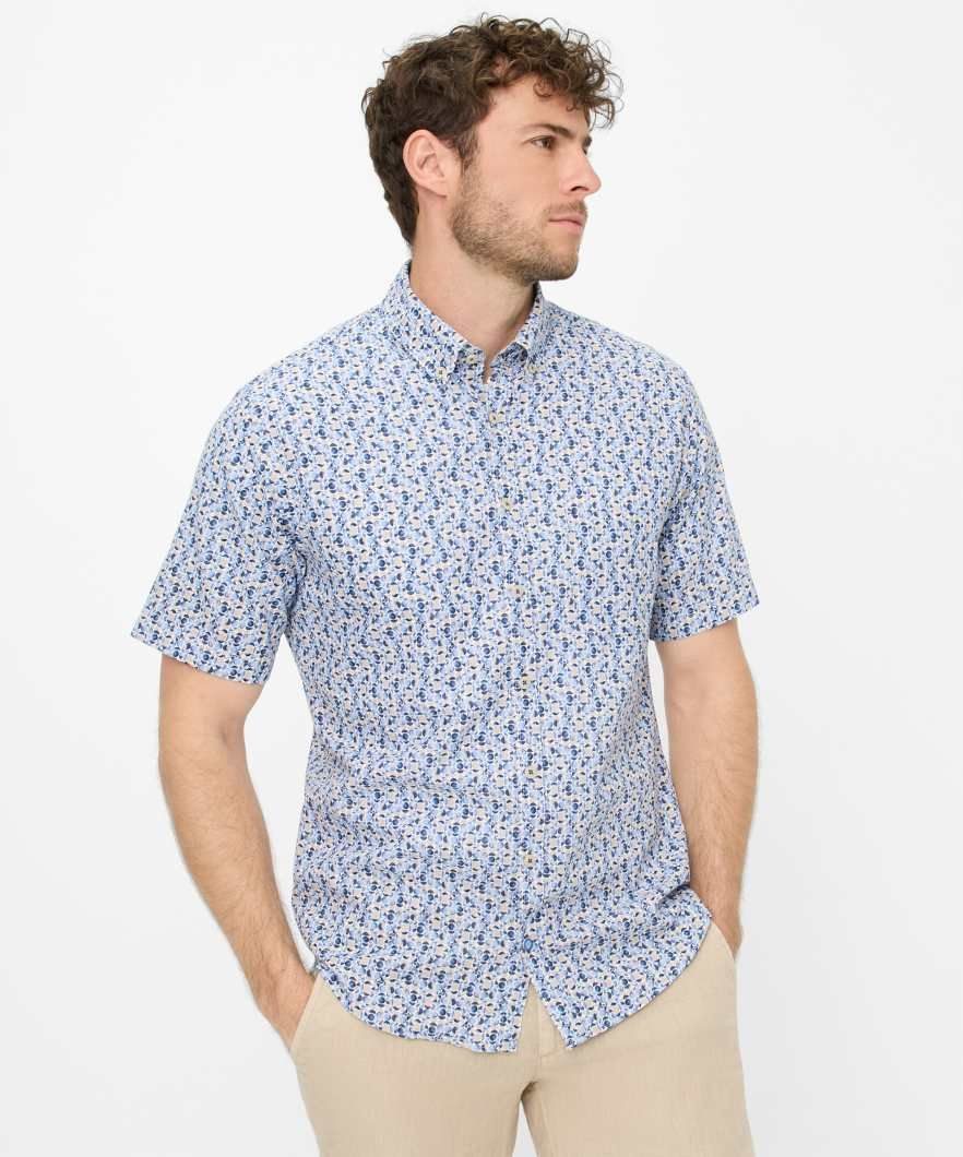 Ein luftiges Hemd für Herren, das mit seiner modernen Eleganz und sommerlichen Leichtigkeit überzeugt, ist das Hemd STYLE DAN. Perfekt für die warme Jahreszeit gestaltet, kombiniert dieses Hemd ein raffiniertes Design mit einer besonderen Materialoptik. Die taillierte Silhouette, eine klassische Knopfleiste und der Button-Down-Kragen unterstreichen den modernen, gepflegten Stil. Hinzu kommen eine aufgesetzte Brusttasche und ein dezenter All-Over-Print, die dem Hemd einen stilvollen, zeitgemäßen Look verleihen. Der hochwertige Baumwoll-Leinen-Mix sorgt nicht nur für eine angenehme, leichte Haptik, sondern auch für exzellente Atmungsaktivität und hohen Tragekomfort – ideal für heiße Sommertage. Der Leinenanteil bringt eine natürliche Frische und Textur mit sich, während die Baumwolle für Weichheit und Strapazierfähigkeit steht. Slubyarn, ein Garn mit einer charakteristischen, leicht unregelmäßigen Struktur, verleiht dem Hemd eine natürliche und zugleich individuelle Note. Mit seinem Modern-Fit-Schnitt vereint dieses Hemd stilvolle Optik und einzigartigen Komfort zu einem perfekten Begleiter für sommerliche Anlässe.