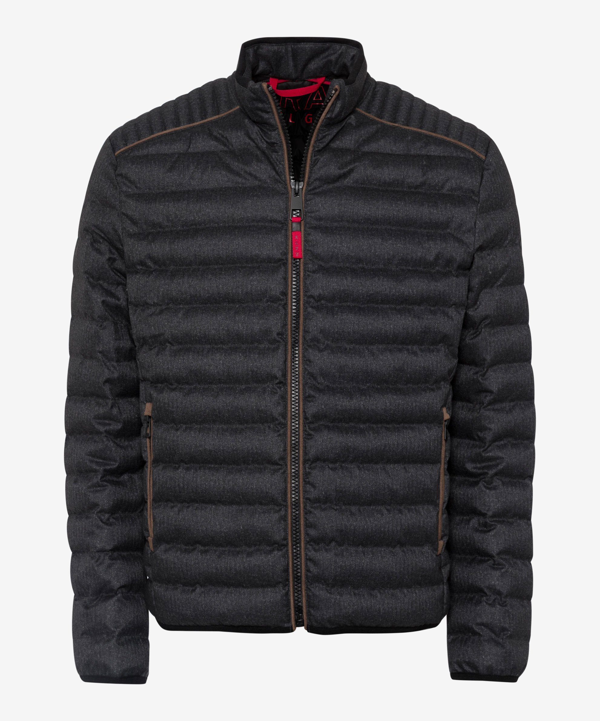 Steppjacke im Style Craig – ein modisches Highlight für die kühlen Tage. Diese Jacke begeistert durch ihre moderne Steppung mit hochwertigem Reißverschluss. Der Stehkragen mit stilvollem Strickeinsatz verleiht nicht nur eine Extraportion Wärme, sondern setzt auch modische Akzente. Funktionalität kommt ebenfalls nicht zu kurz: Seitlich angebrachte Reißverschlusstaschen bieten ausreichend Platz für Ihre Essentials. Im Inneren verfügt die Jacke über zwei Taschen: eine mit Reißverschluss für sichere Aufbewahrung und eine zusätzliche mit Druckknopf. Das Material aus 100% Polyester garantiert Langlebigkeit und Pflegeleichtigkeit. Dank der Füllung aus Fake-Daune hält die Jacke angenehm warm, ohne zu beschweren. Ein idealer Begleiter für den modernen Winter.Form: * Modische Jacke * Outdoor-Jacke * Stehkragen mit Strickeinsatz * Paspelierte Reißverschlusstaschen vorne * Praktische Innentaschen * Hochwertiger Reißverschluss * Gerader Schnitt Material: * Fake Down: federlose Füllung * Besteht aus einer hochwertigen Polyesterfaser * Bietet höchsten Tragekomfort Details/Verarbeitung: * Moderne Steppotik * Melange-Optik * Unifarben * Ansprechendes Logo auf linkem Ärmel Maße: * Rückenlänge bei Размер M (50): 68 cm * Unser Model trägt Размер M (50) und ist 188 cm groß