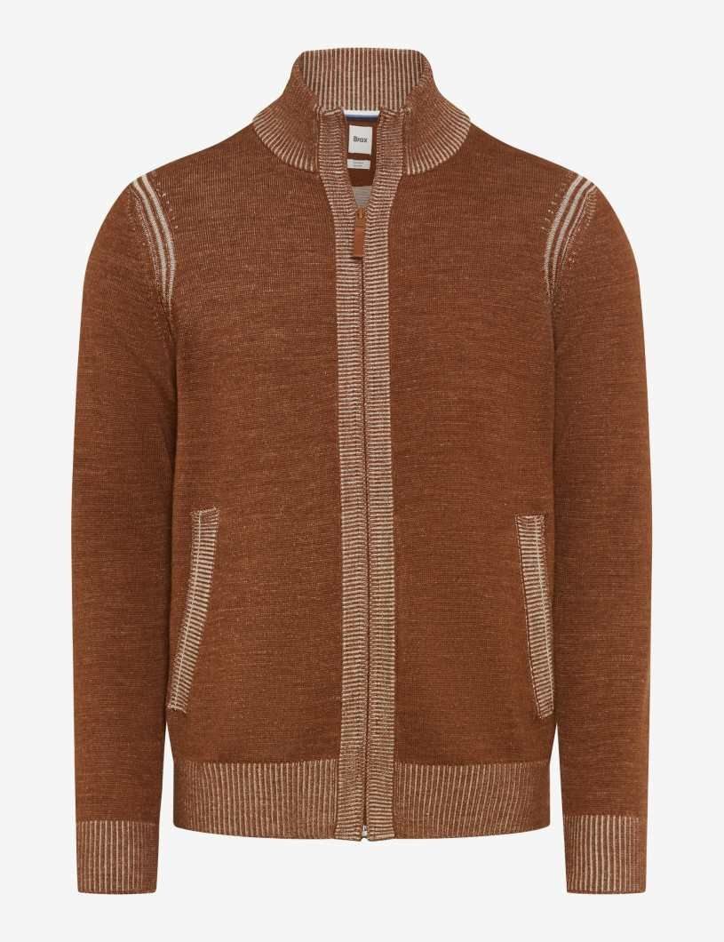 Die Strickjacke im Style Jake überzeugt mit einer klaren, geraden Silhouette und bringt sportiven Esprit in Ihre Garderobe. Ihr hochschließender Stehkragen sorgt für einen smarten Look und bietet gleichzeitig angenehmen Schutz an kühleren Tagen. Der durchgehende Reißverschluss setzt funktionale Akzente und macht die Jacke besonders unkompliziert im Handling. Praktische Einschubtaschen mit dezent abgesetzten Kanten verleihen dem Design eine lässig-urbane Note. Das Strickbild zeigt sich fein und gleichmäßig, mit dezenten Kontrastnähten entlang der Schultern und Taschen, die subtile Akzente setzen und den maskulinen Charakter betonen. Breite Rippbündchen an Saum und Ärmeln sorgen für einen perfekten Sitz und ein formstabiles Finish. Die besondere „Feel Good Sportive“-Verarbeitung vereint Komfort und Funktionalität: Die Innenseite aus weicher Baumwolle liegt angenehm auf der Haut, während die Außenseite mit hochwertiger Wolle für eine edle Optik und wärmende Eigenschaften sorgt. Polyacryl-Anteile machen das Material pflegeleicht und formstabil – ideal für den modernen Alltag.