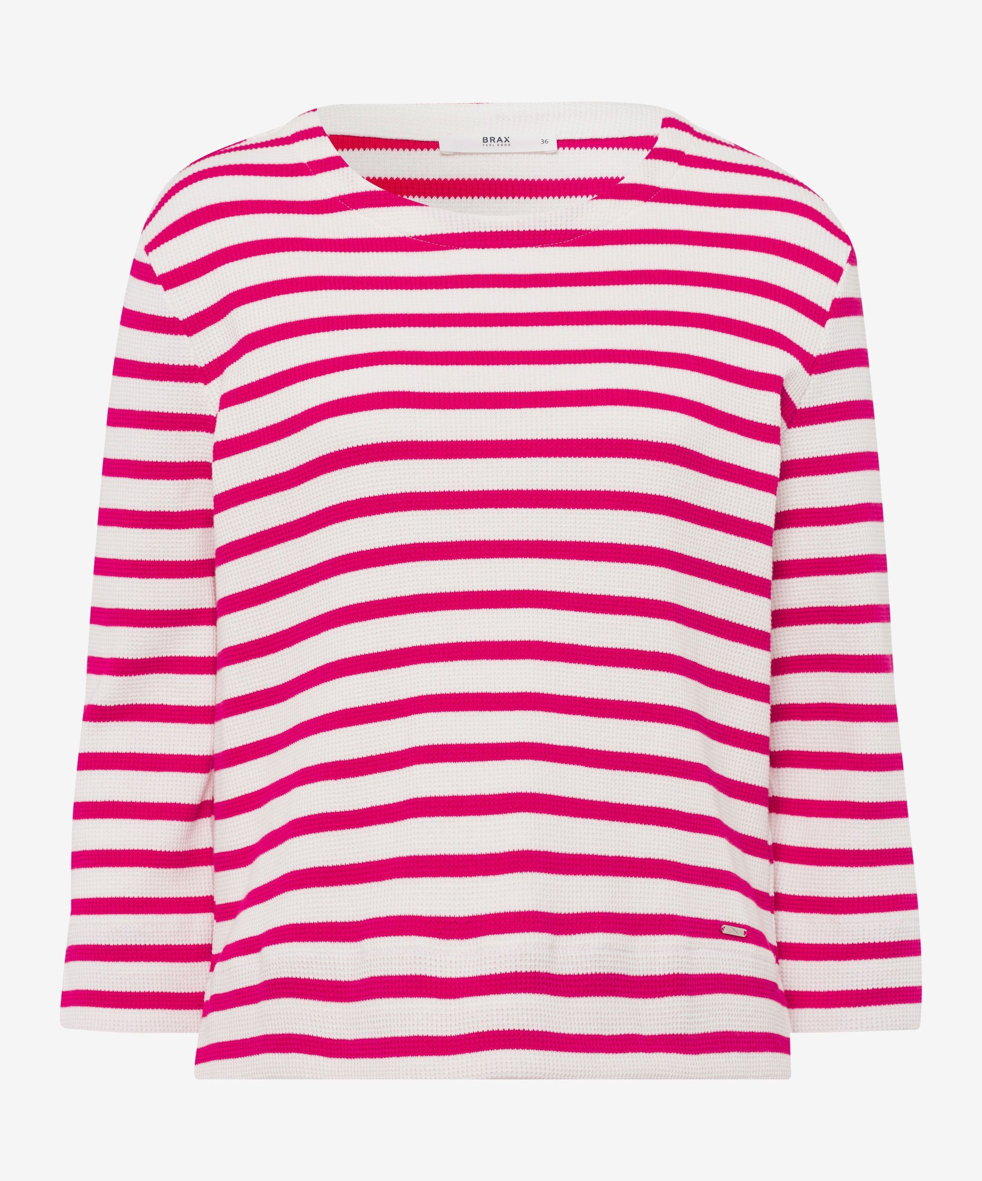 Das Damenshirt Style Bonnie ist ein Must-Have für Ihre Garderobe. Die gerade Silhouette mit 3/4-Arm und Rundhalsausschnitt unterstreicht eine schlichte Eleganz, während kleine Saumschlitze modische Akzente setzen. Die Ringel verleihen dem Shirt eine verspielte Note und machen das Damenshirt zu einem cleanen Basic mit modernem Flair. Die reine Baumwolle macht es besonders hautfreundlich und atmungsaktiv und ist bekannt für ihre ausgezeichneten temperaturregulierenden Eigenschaften. Die natürliche Faser fühlt sich angenehm weich auf der Haut an und sorgt für ein langanhaltendes, komfortables Tragegefühl.Form: * Damenshirt mit 3/4 Arm * Rundhalsausschnitt * Gerade Silhouette Material: * Sweat * Aus reiner, hochwertiger Baumwolle * Baumwolle: hautsympathisch, atmungsaktiv, strapazierfähig * Bietet höchsten Tragekomfort Details/Verarbeitung: * Kleine Saumschlitze * Modischer Streifen * Dezentes Label Maße: * Rückenlänge bei Размер 38 (M): 64 cm * Unser Model trägt Размер 36 (S) und ist 177 cm groß