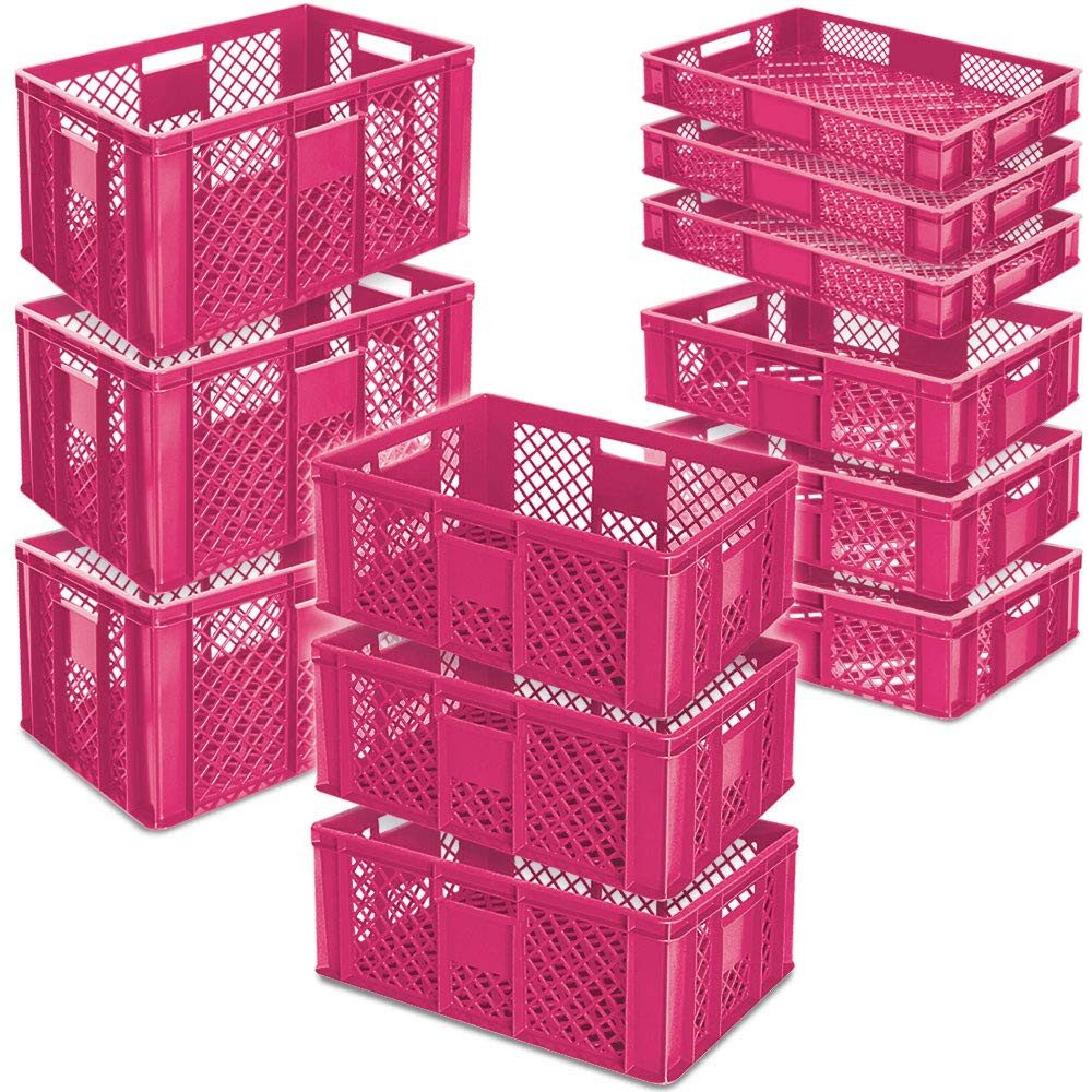 Set besteht aus 12x Stapelkorb/Bäckerkiste: 3x Stapelkorb/Bäckerkiste LxBxH 600x400x90 mm, Inhalt 15 Liter, Gewicht 0,8 kg 3x Stapelkorb/Bäckerkiste LxBxH 600x400x150 mm, Inhalt 27 Liter, Gewicht 1,3 kg 3x Stapelkorb/Bäckerkiste LxBxH 600x400x240 mm, Inhalt 43 Liter, Gewicht 2,0 kg 3x Stapelkorb/Bäckerkiste LxBxH 600x400x320 mm, Inhalt 63 Liter, Gewicht 2,4 kg