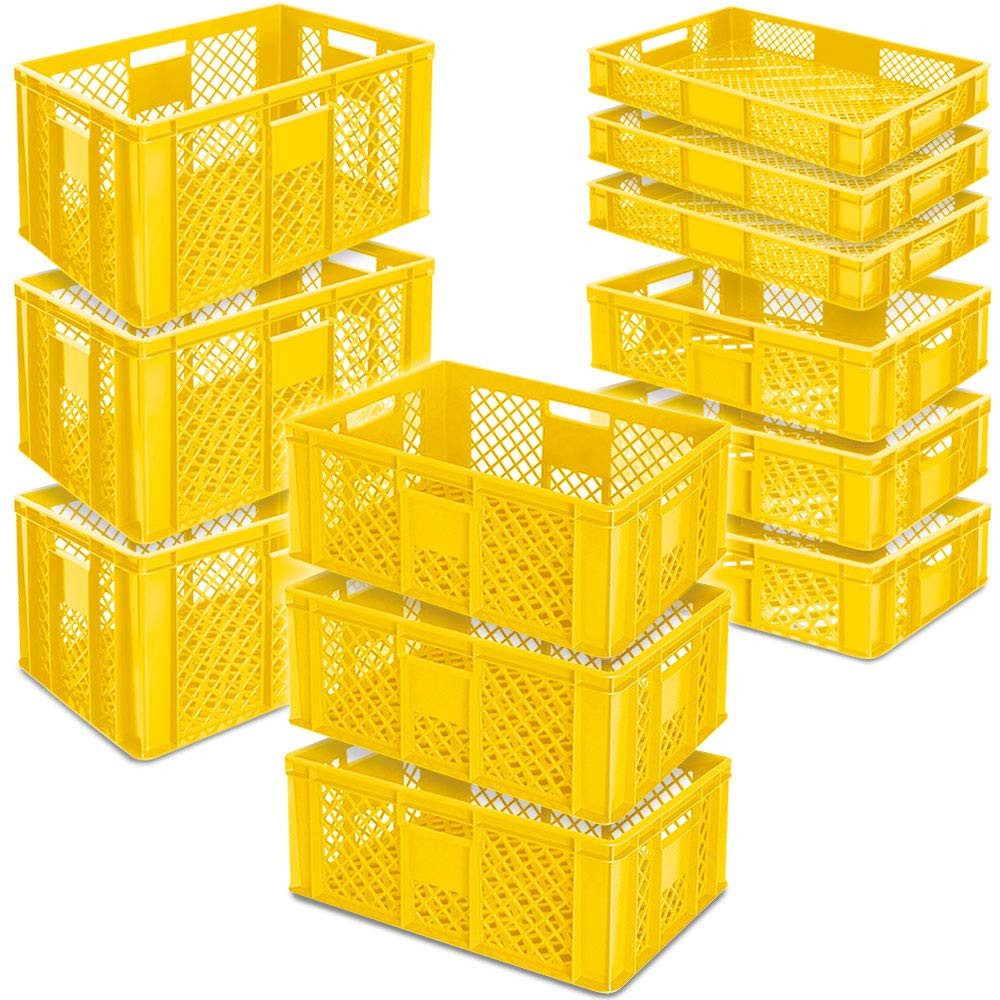 Bestens geeignet zum sicheren und platzsparenden Lagern und Transportieren von Waren. Der stapelbare Korb wird aus hochwertigem, lebensmittelechtem Kunststoff hergestellt und kann für Transporte von unverpackten Lebensmitteln verwendet werden. Die flüssigkeits- und luftdurchlässige Konstruktion gewährleistet eine optimale Luftzirkulation und ist darüber hinaus leicht. Der Behälter ist spülmaschinenfest, kältebeständig bis -40ºC, hitzebeständig bis +60ºC und gegen viele Chemikalien beständig. Besonders geeignet sind diese Euro-Stapelbehälter für den Einsatz im Lager, im Handwerk, im Keller, im Geschäft, in Bäckereien, in der Nahrungsmittelindustrie, Gastronomie oder zu Hause. Dadurch, dass die Euro-Stapelbehälter über einen Stapelrand verfügen, können Sie sicher gestapelt und damit platzsparend gelagert werden.