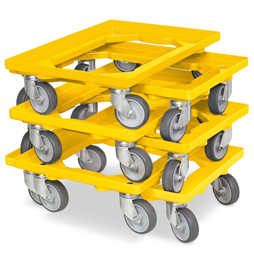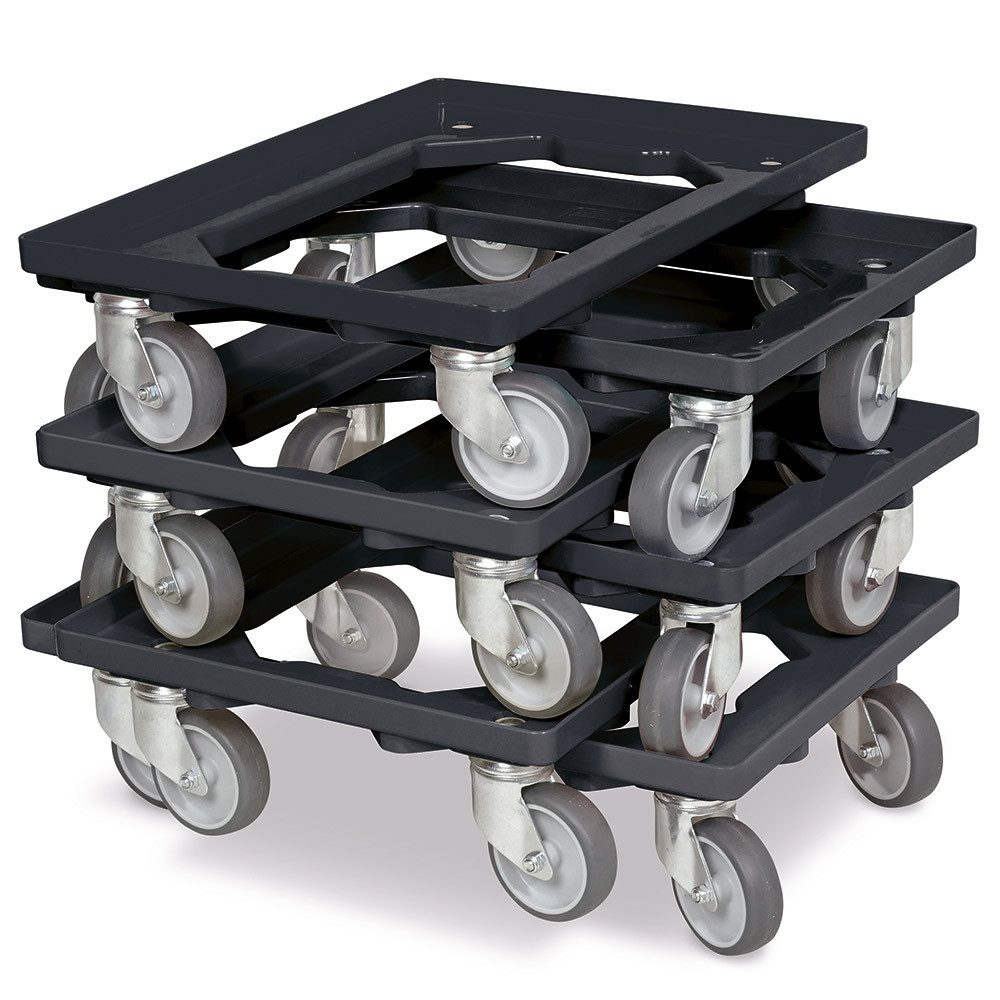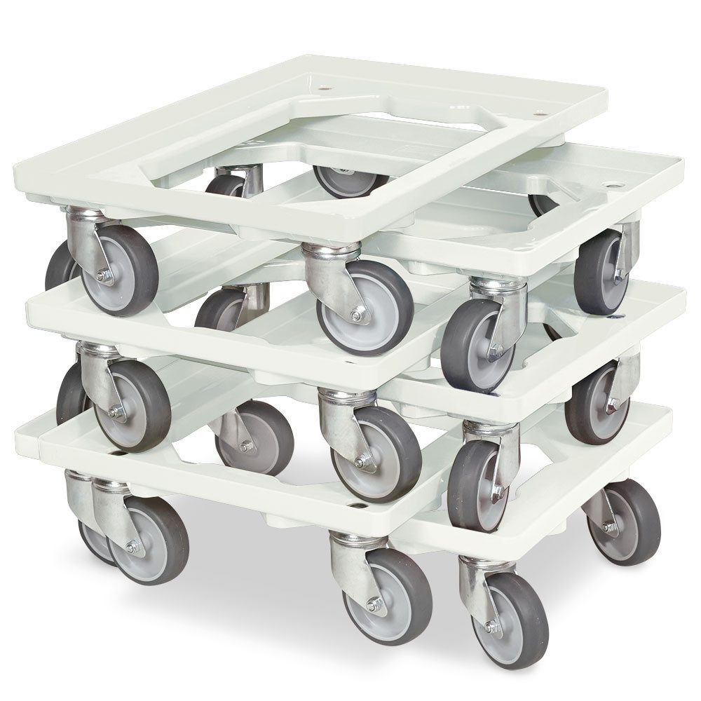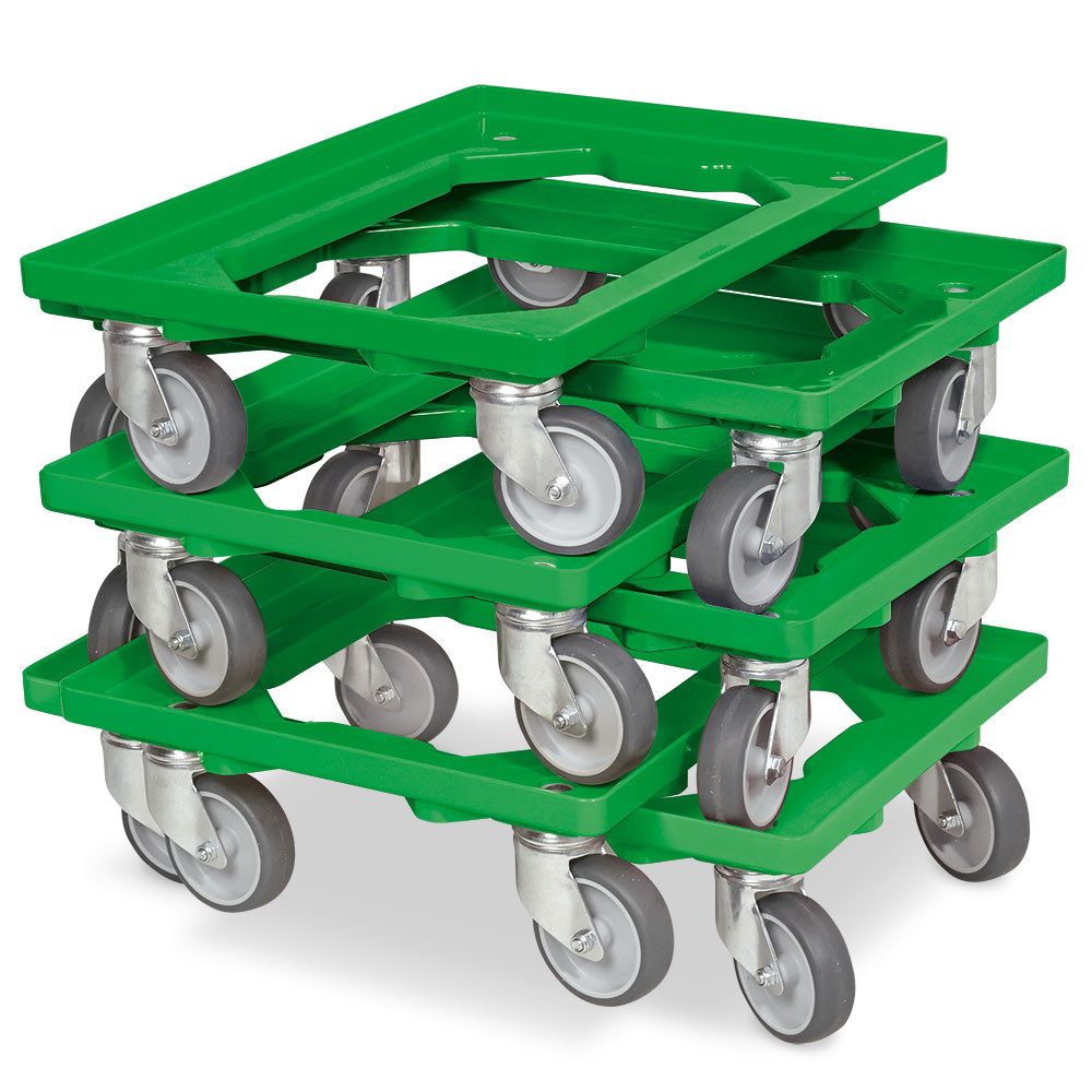 Dieses Set aus 6 Logistikrollern ist ideal für den Transport von Behältern im Euro-Maß 600x400 mm oder zwei Behältern 400x300 mm. Jeder Roller verfügt über ein bruch- und schlagsicheres Rollerdeck aus speziellem ABS-Kunststoff, das mit einem umlaufenden Rand als Abrutschsicherung ausgestattet ist. Die robusten Transportroller sind mit kugelgelagerten Lenkrollen aus verzinktem Stahl und leise laufenden, grauen Gummirädern (Rad-Ø 100 mm) für einen spurlosen Lauf versehen. Mit einer Tragkraft von bis zu 250 kg sind sie perfekt für schwere Lasten geeignet. Die Ladefläche hat die Maße LxBxH 607 x 407 x 146 mm, während die Außenmaße bei LxBxH 615 x 415 x 170 mm liegen. Die Tragkraftangaben gelten bei gleichmäßig verteiltem Gewicht. Diese vielseitigen Universal-Lastenroller bieten eine effiziente Lösung für Ihre Logistikbedürfnisse!