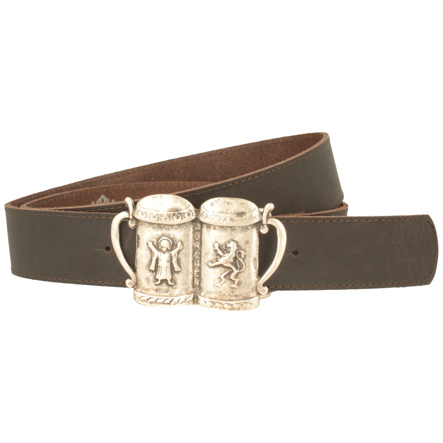 - Echtleder-Gürtel mit Hingucker-Schmuckschließe in Altsilber, die zwei Bierkrüge mit Münchner Motiven zieren