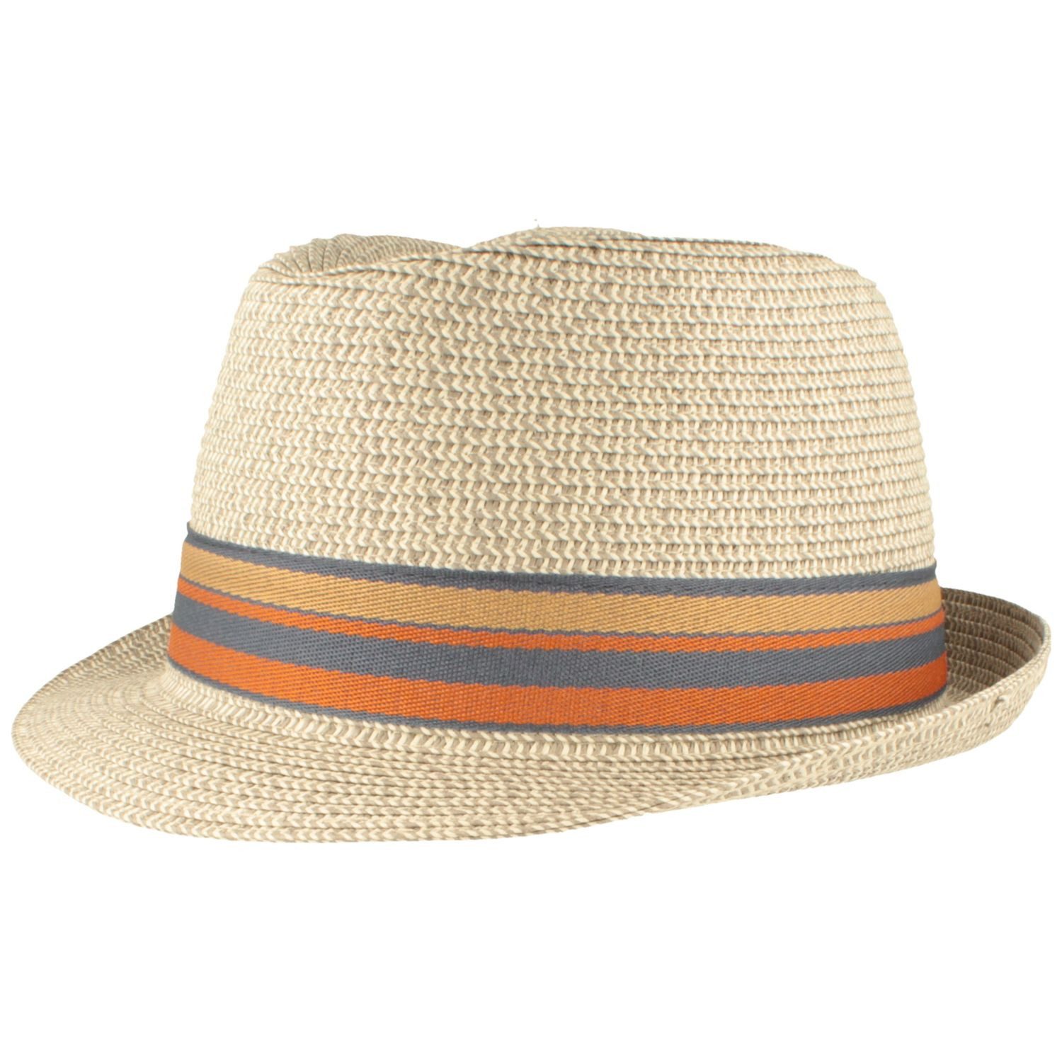 - Das Design des Hutes besticht mit einer leichten, hellen Grundfarbe und bunt gestreiftem Ribsband