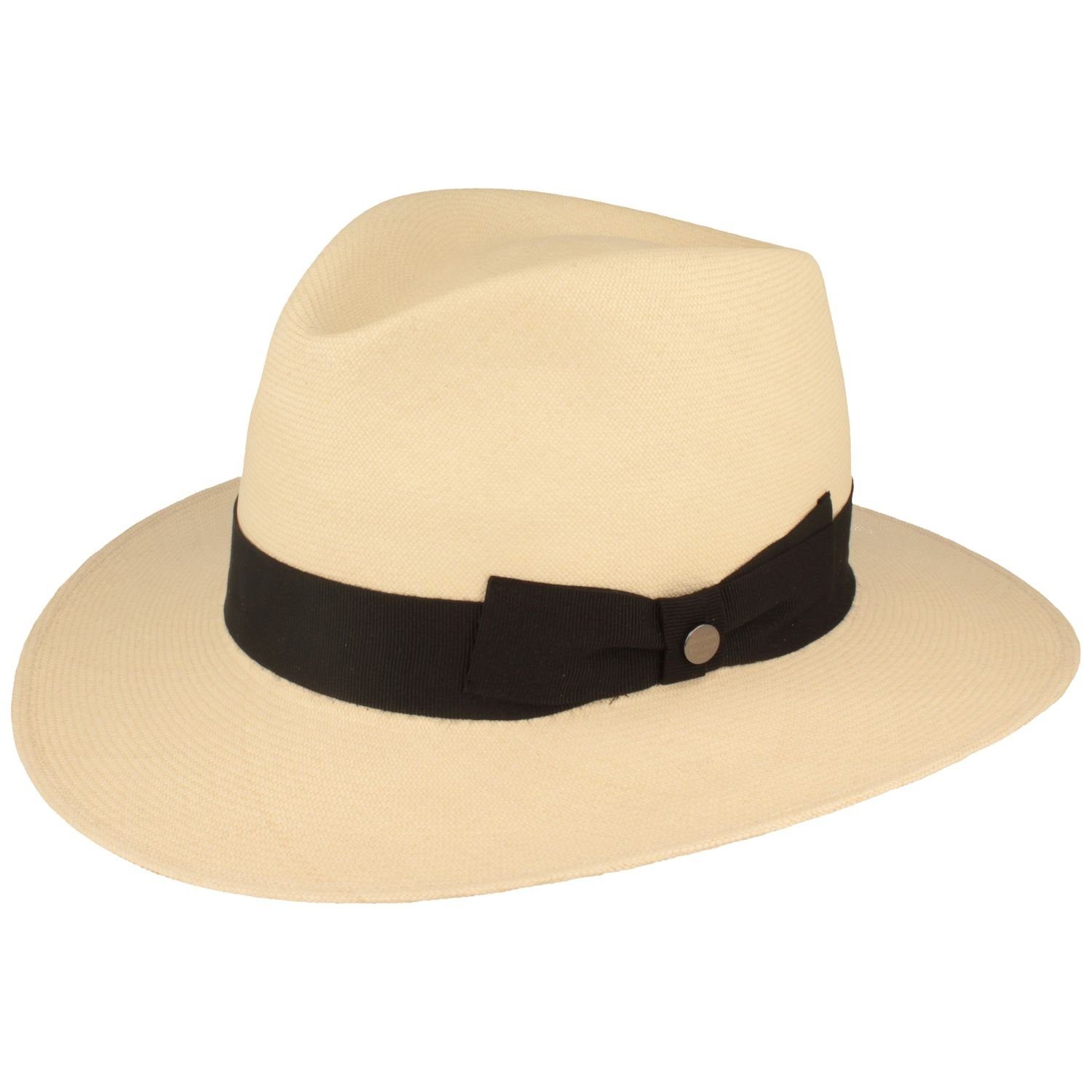 - Besonders feiner hochwertiger Panama Montecristi Strohhut aus 100% Toquilla-Stroh mit Ripsband-Garnitur mit seitlicher Schleife von Hut-Breiter