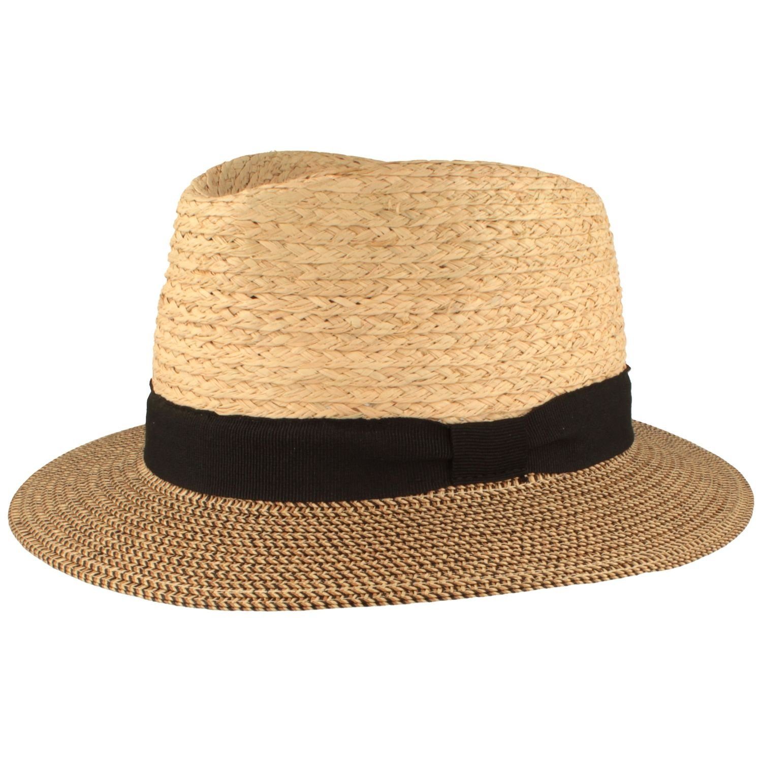 - Mittelbreiter Borten-Traveller im Duotone-Design mit melierter Krempe, Kopfteil aus Raffia-Borte & klassischer Ripsband-Garnitur