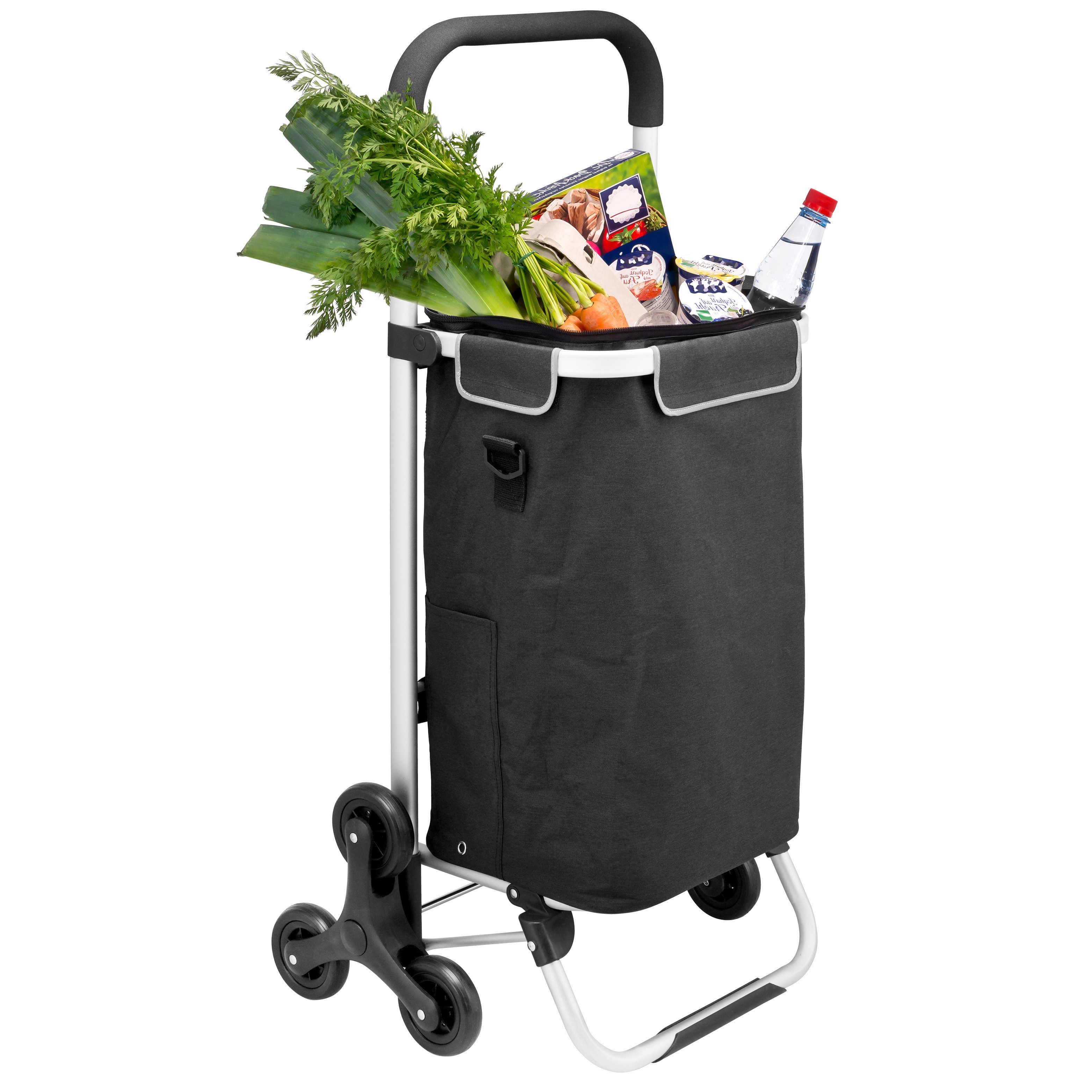 Modell DREBBER * das geringe Eigengewicht und die leichtläufigen Treppensteigräder machen das Manövrieren zum Kinderspiel * die integrierte Kühltasche hilft bei der Kühlung von Lebensmitteln * binnen Sekunden können Sie die Tasche vom Wagen abnehmen und als Tragetasche verwenden