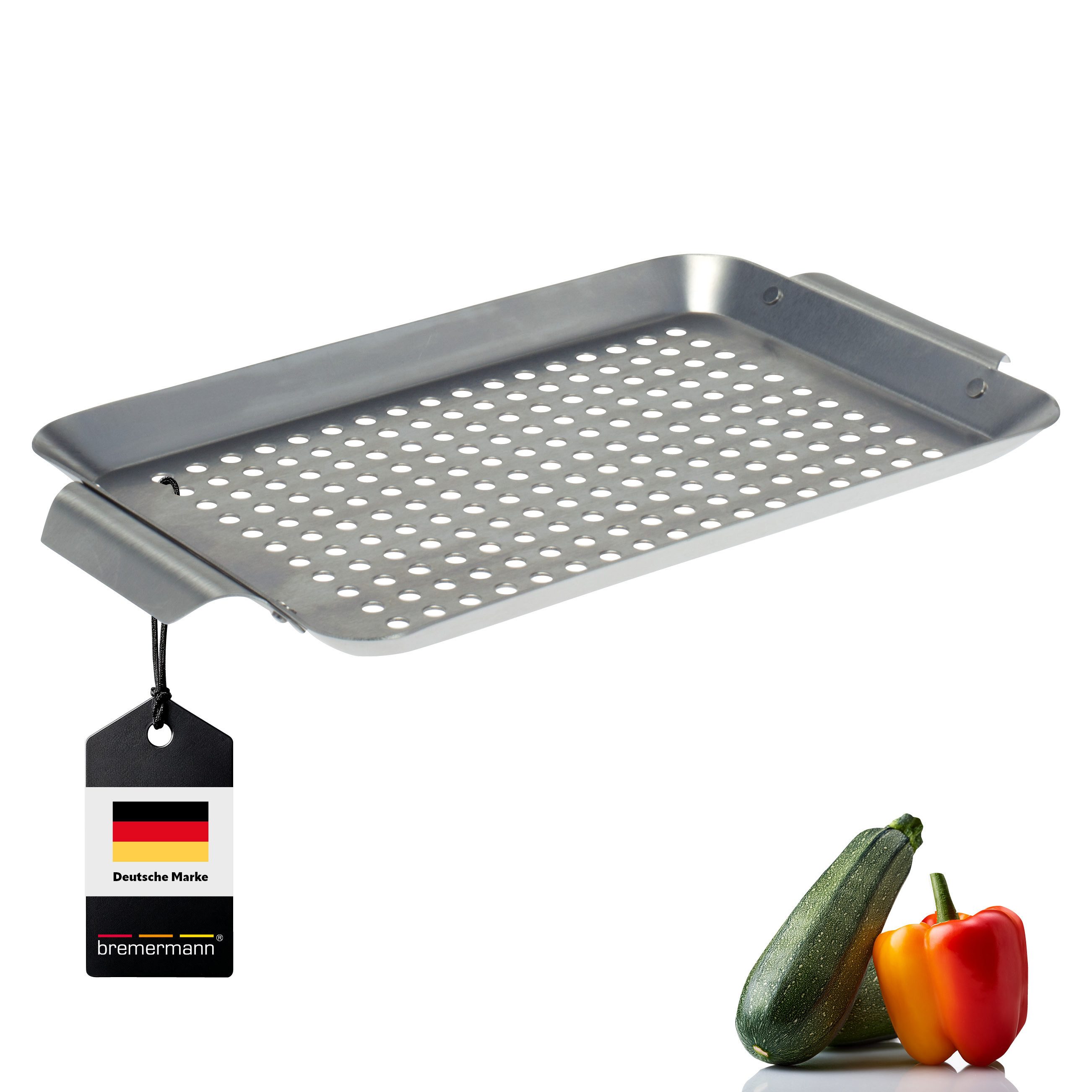 Mit dieser Grillplatte von bremermann erweitern Sie die Möglichkeiten auf Ihrem Grill. Einfach auf den Grillrost legen und schon können Sie auch kleine Stücke oder zartes Grillgut zubereiten. Nichts fällt mehr durch den Grillrost in die Flammen oder verbrennt von durchschlagenden Flammen.