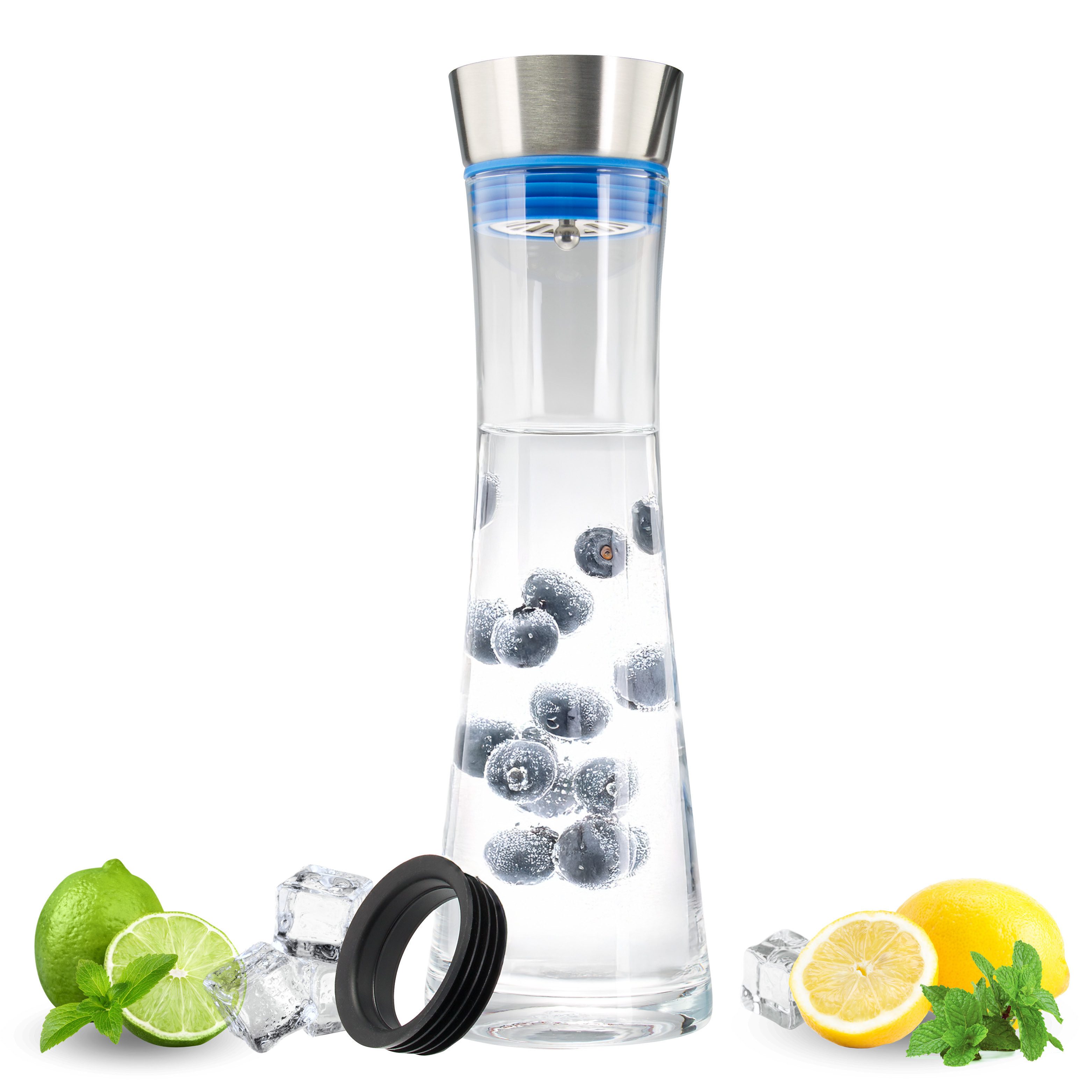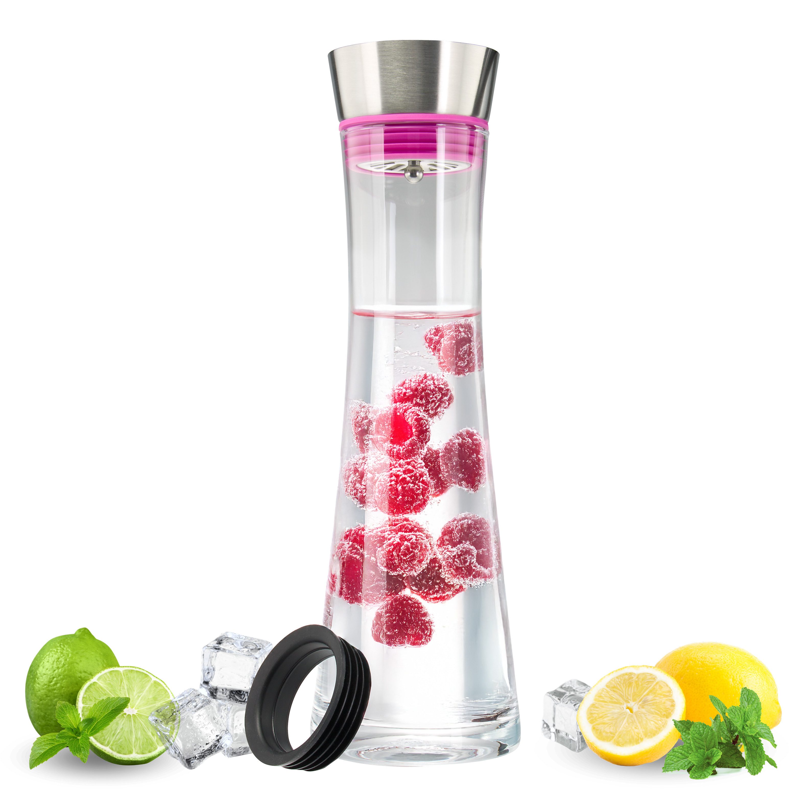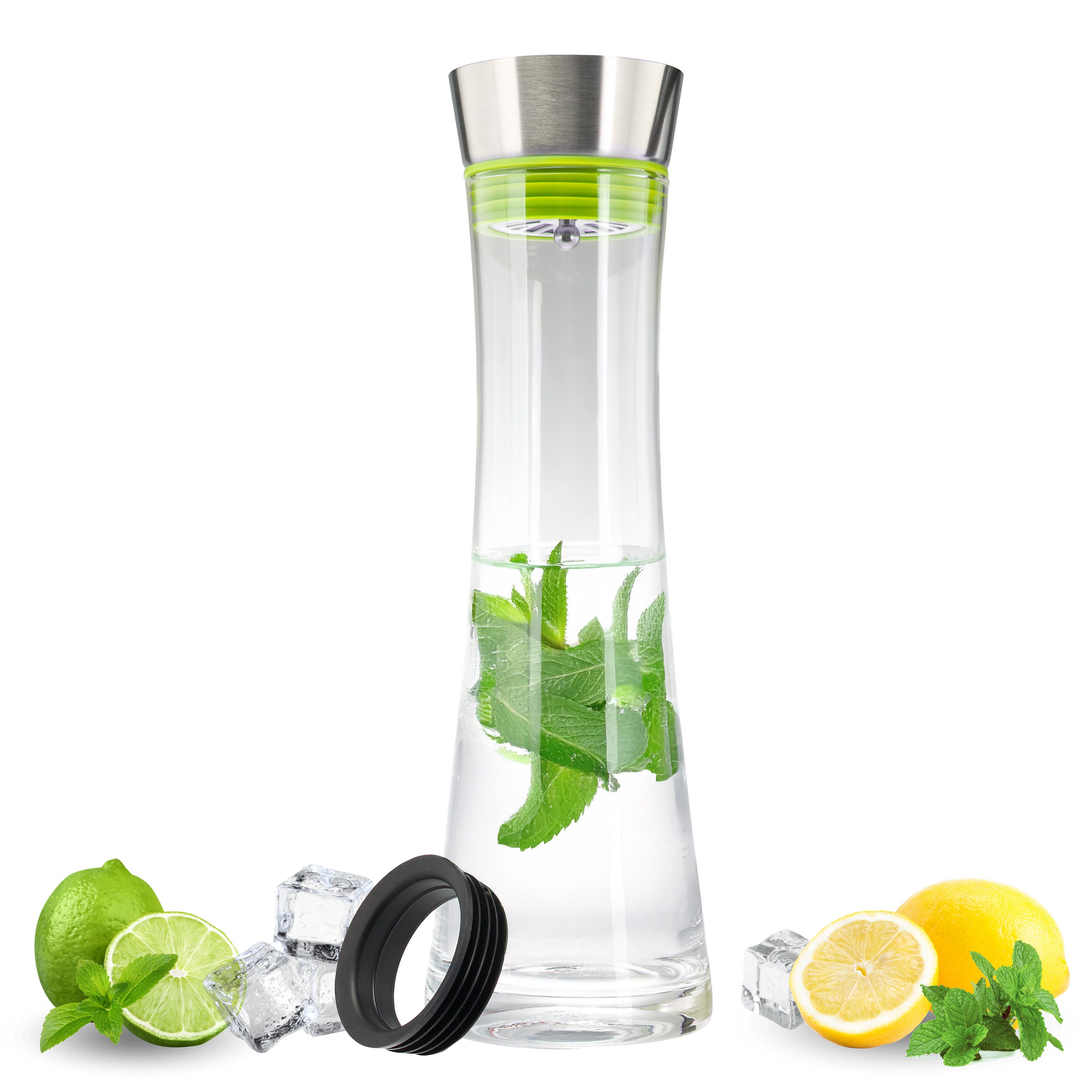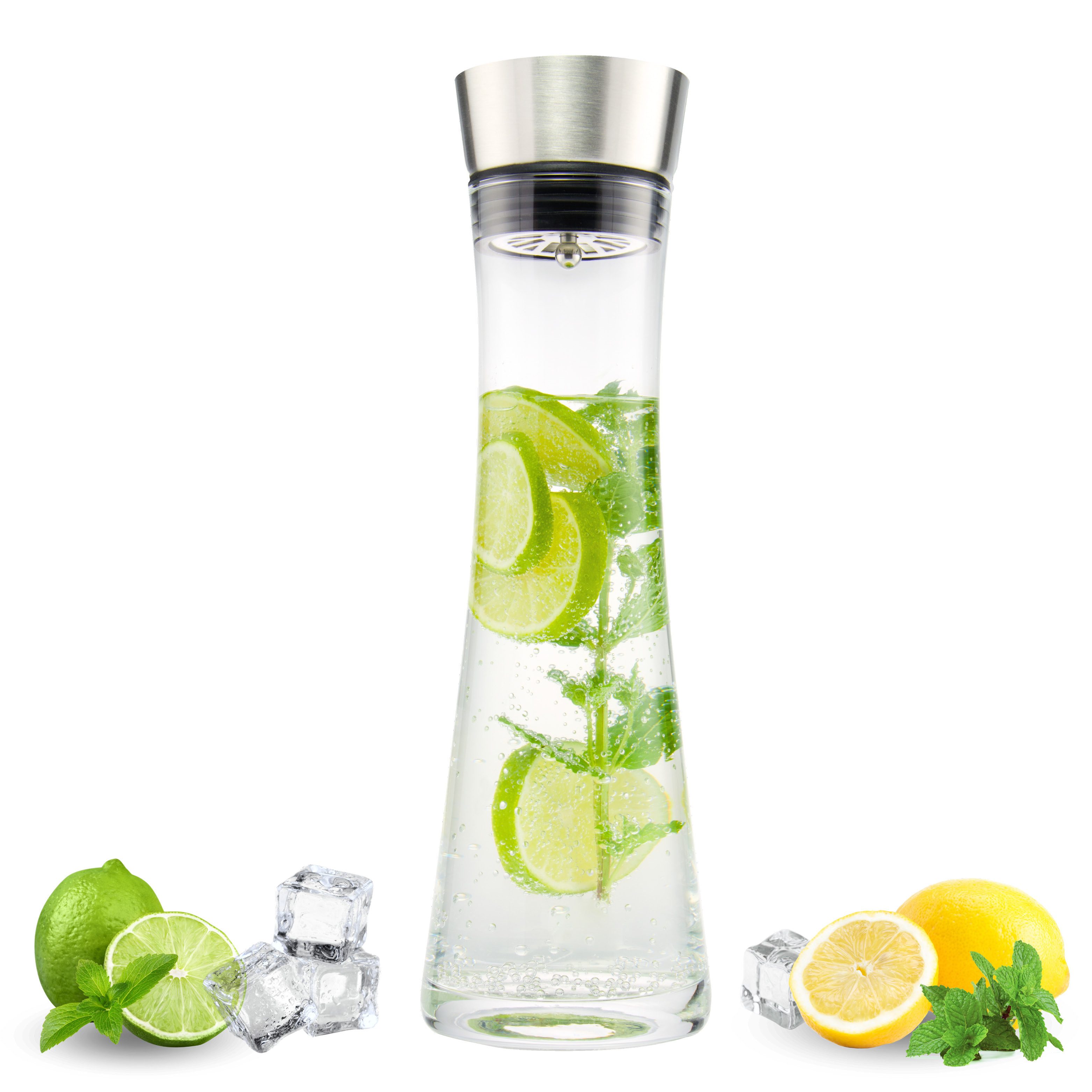 Ein tolles, wunderschön anzusehendes Produkt. Nach dem ersten Ausprobieren war ich gleich begeistert und habe sofort noch eine weitere Karaffe bestellt, da ich Gäste zur Sommerparty erwartete. Mit Zitrusfrüchten, Minze oder Ingwer gefüllt, Eis und Wasser dazu - fertig ist der erfrischende Sommertrunk. Der Verschluss ist sehr praktisch, der Ausgießer aus Edelstahl tropft nicht. Meine Gäste haben so fleißig zugelangt, ich musste ständig wieder auffüllen! Die Karaffe steht jetzt im Sommer täglich mit auf dem Tisch, wir lieben sie!