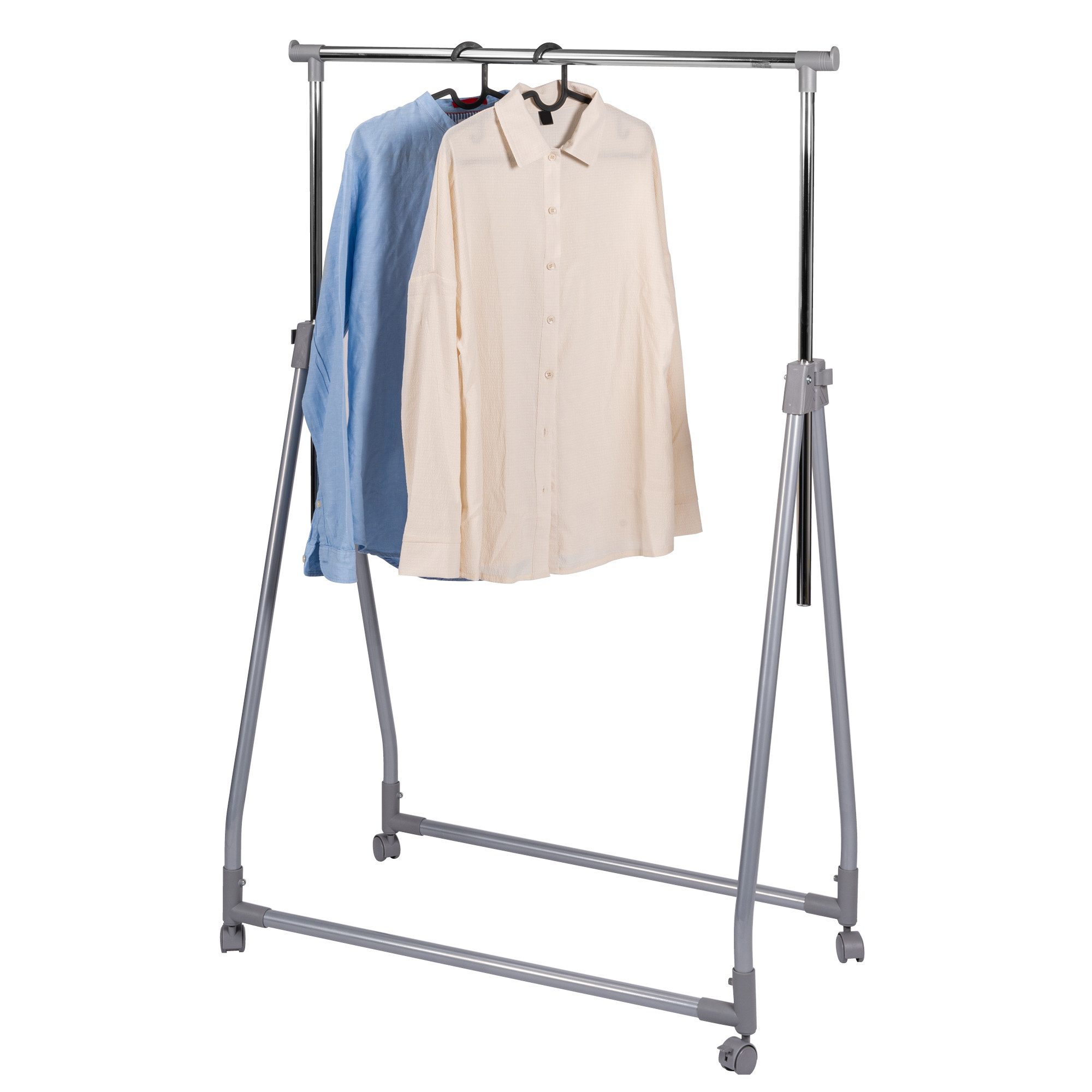 Brauchen Sie die Rollgarderobe einmal nicht, können Sie ihre Beine platzsparend zusammenklappen. Sie ist dann so schmal, dass Sie durchaus auch unter dem ein oder anderen Bett gelagert werden könnte. Für den nächsten Einsatz brauchen Sie den Kleiderwagen dann einfach nur aufklappen und es kann losgehen. Ihr Kleiderwagen auf Rollen soll mobil sein aber nicht immer. Darum haben 2 der 4 Möbelrollen eine Feststellbremse.