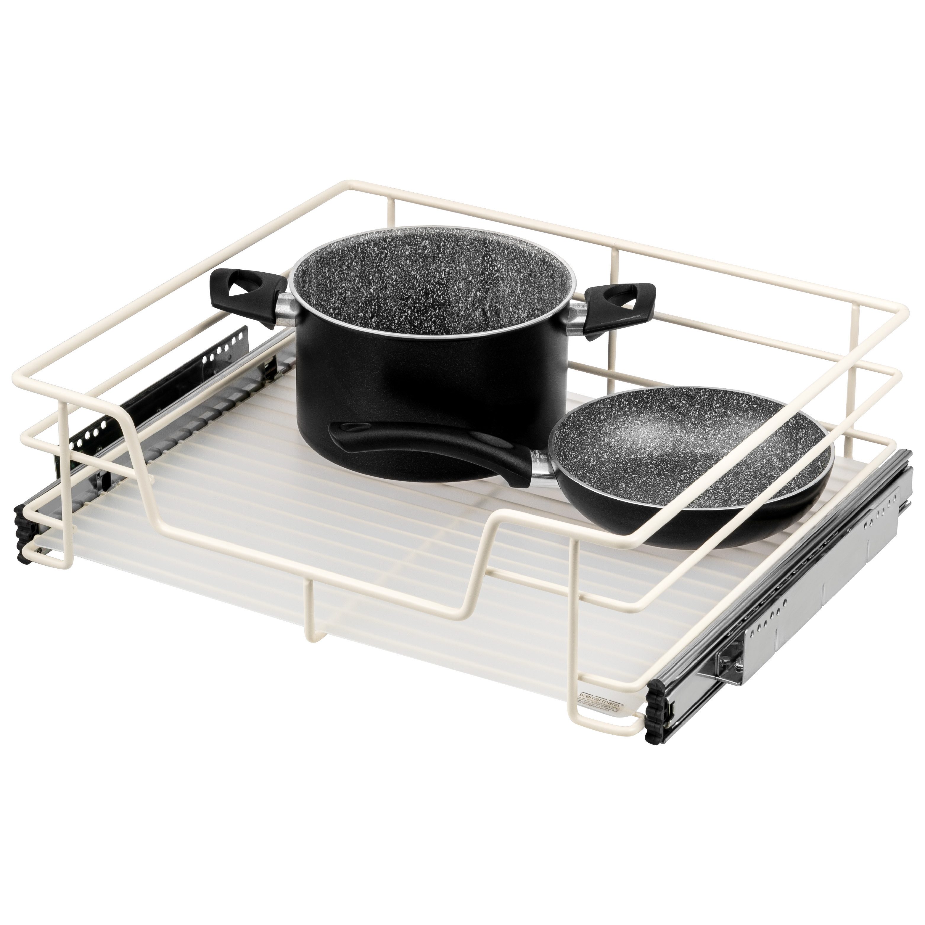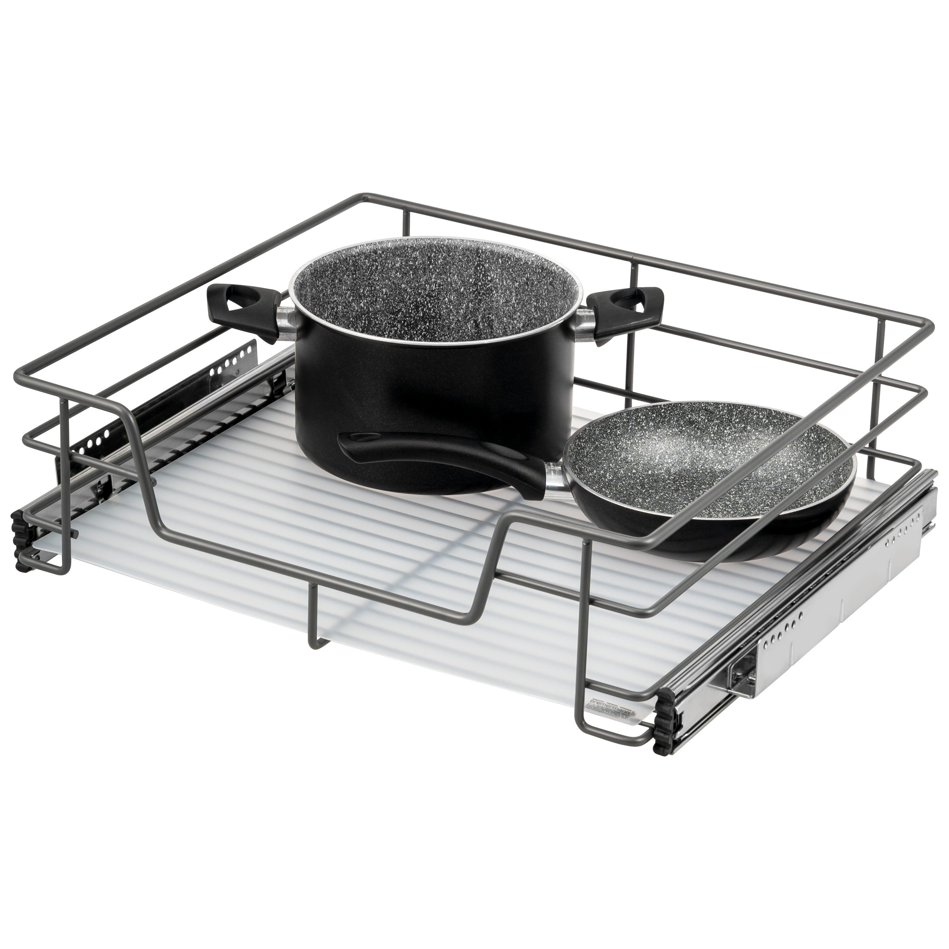 Große Schublade. Sehr stabil. Bei uns proppe-voll! Kein Durchhängen oder so! Schublade läuft sehr gut in den Schienen. Montage war sehr einfach. Bin echt happy. Bestellen ich jetzt für alle meine Küchenschränke!!!