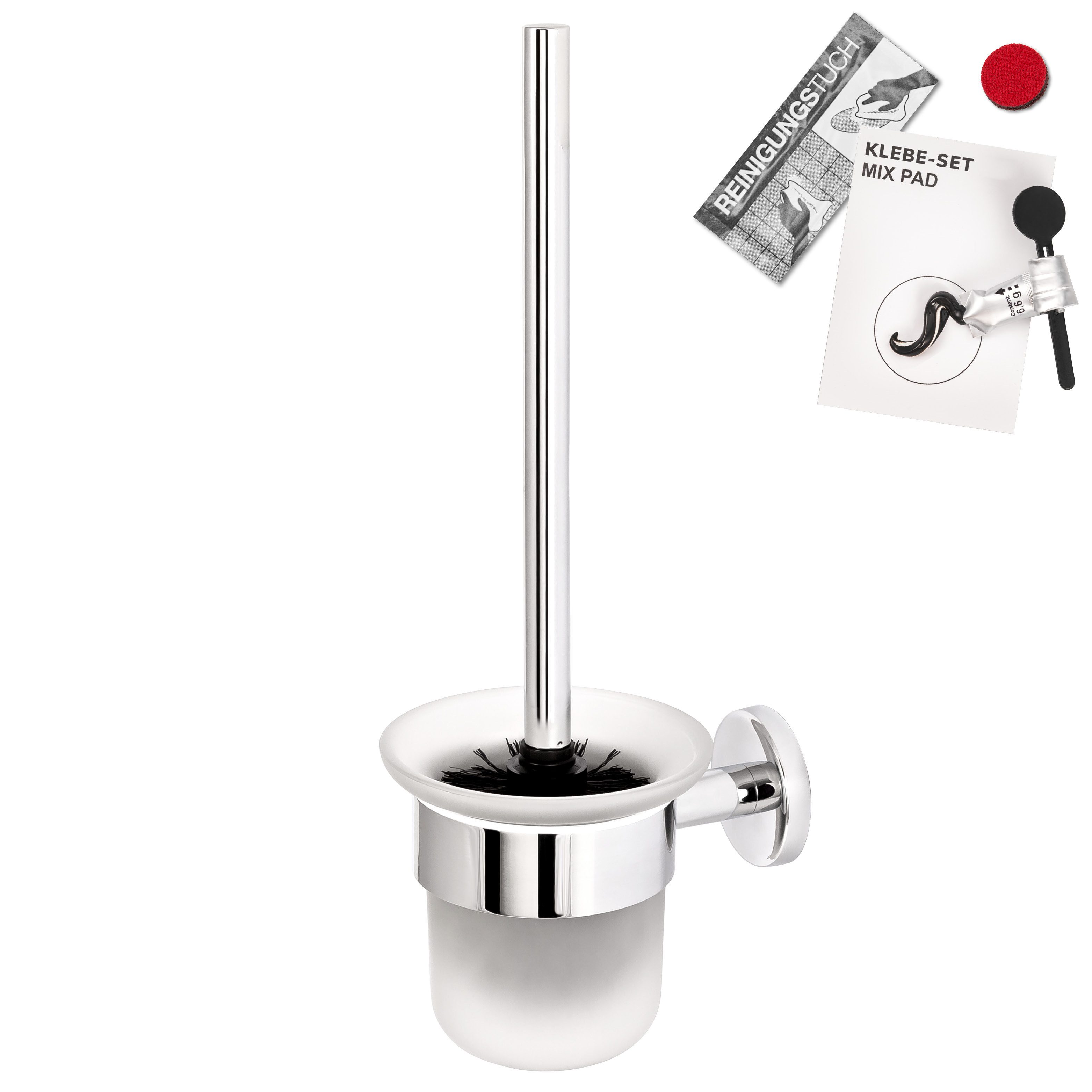WC-Garnitur mit Wandhalterung inkl. Klebe-Set und 1 Ersatzbürstenkopf, hygienisch herausnehmbarer Glasbehälter