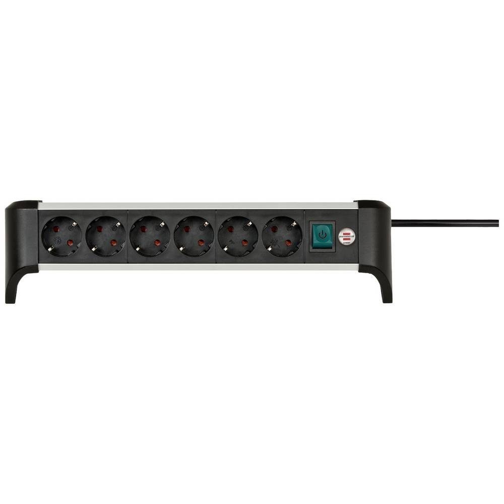 Eigenschaften | Betriebsspannung: 230 V · Einsatzort: Innenbereich · Funktionsanzeige: optisch · Herstellerfarbe: Silber-Schwarz · Kabel-Typ nach DIN/VDE: H05VV-F 3G 1,5 mm² · Kabellänge: 3 m · Material: Aluminium, Kunststoff · Montageart: Tisch · Netzstecker-Typ: Schutzkontakt · Produktabmessung, Breite: 105 mm · Produktabmessung, Höhe: 115 mm · Produktabmessung, Длина: 385 mm · Steckdosen-Anzahl: 6 · Steckdosenleisten-Besonderheiten: mit Schalter, erhöhter Berührungsschutz |