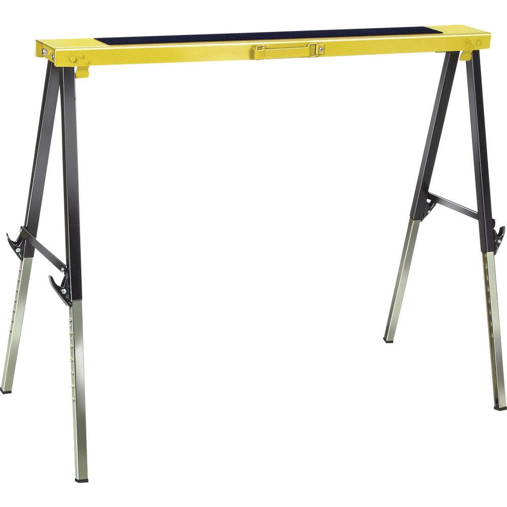 Der extrem stabile und standfeste Falt-Arbeitsbock eignet sich perfekt für Malerarbeiten, Innenausbauarbeiten oder auch alltägliche Arbeiten in der Werkstatt. Jeder Fuß ist über eine Schnellspannvorrichtung einzeln höhenverstellbar (bis zu 83 cm hoch) und ermöglicht somit ein flexibles Arbeiten an Ort und Stelle. Der faltbare Metallbock eignet sich vor allem perfekt auf Treppen, aufgrund seiner Füße mit Schutzkappen. Er ist schlag- und kratzfest und lässt sich außerdem ganz einfach zusammenfalten, perfekt für ein platzsparendes Verstauen. Der prakitsche Tragegriff ermöglicht zudem einen einfachen und mühelosen Transport .