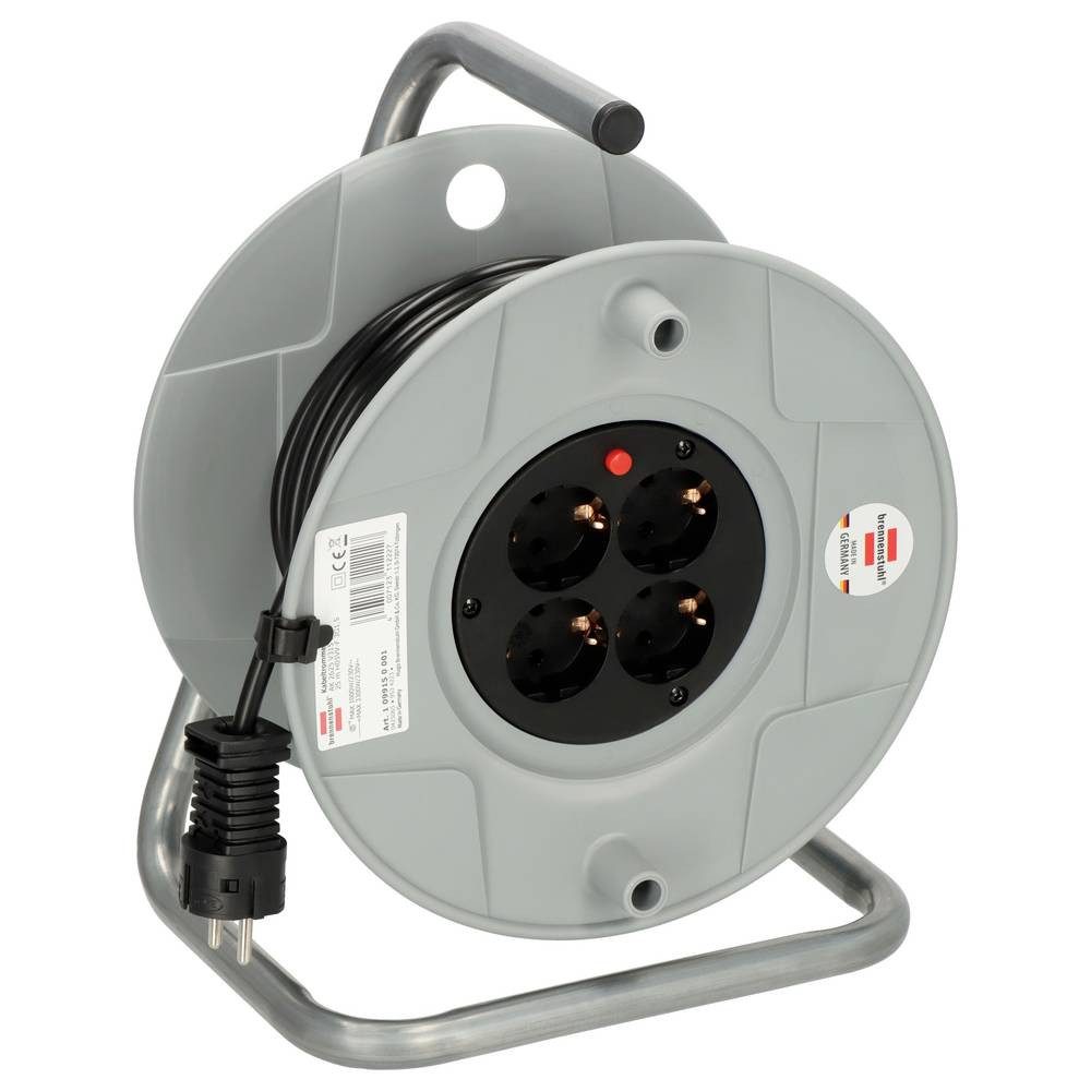 Eigenschaften | Anschluss-Leistung (Details): 3200 W · Anschlusstyp A (bzw. Eingänge): Schutzkontakt-Stecker · Anschlusstyp B (bzw. Ausgänge): Schutzkontakt-Kupplung · Belastbarkeit (aufgerollt/abgerollt): 1100 /3200 W · Einsatzort: Innenbereich · Gewicht: 4 kg · Herstellerfarbe: Schwarz · Kabel-Typ nach DIN/VDE: H05VV-F 3G 1,5 mm² · Kabelfarbe: Schwarz · Kabellänge: 25.00 m · Material: Kunststoff · Nenn-Eingangsspannung: 230 V · Steckdosen-Anzahl: 4 · Steckerausführung: gerade · Trommel-Durchmesser: 260 mm |