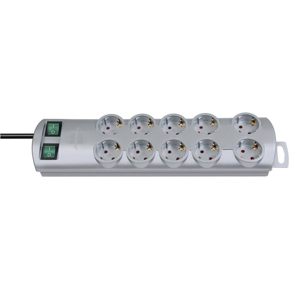 Eigenschaften | Anschluss-Leistung (Details): 3500 W · Ausführung (allgemein): 2 Schalter · Einsatzort: Innenbereich · Herstellerfarbe: Silber · Kabel-Typ nach DIN/VDE: H05VV-F 3G 1,5 mm² · Kabellänge: 2.00 m · Material: Kunststoff · Montageart: Montagelöcher · Netzstecker-Typ: Schutzkontakt · Produktabmessung, Breite: 100 mm · Produktabmessung, Höhe: 53 mm · Produktabmessung, Длина: 390 mm · Steckdosen-Anzahl: 10 · Steckdosenleisten-Besonderheiten: erhöhter Berührungsschutz, mit Schalter |