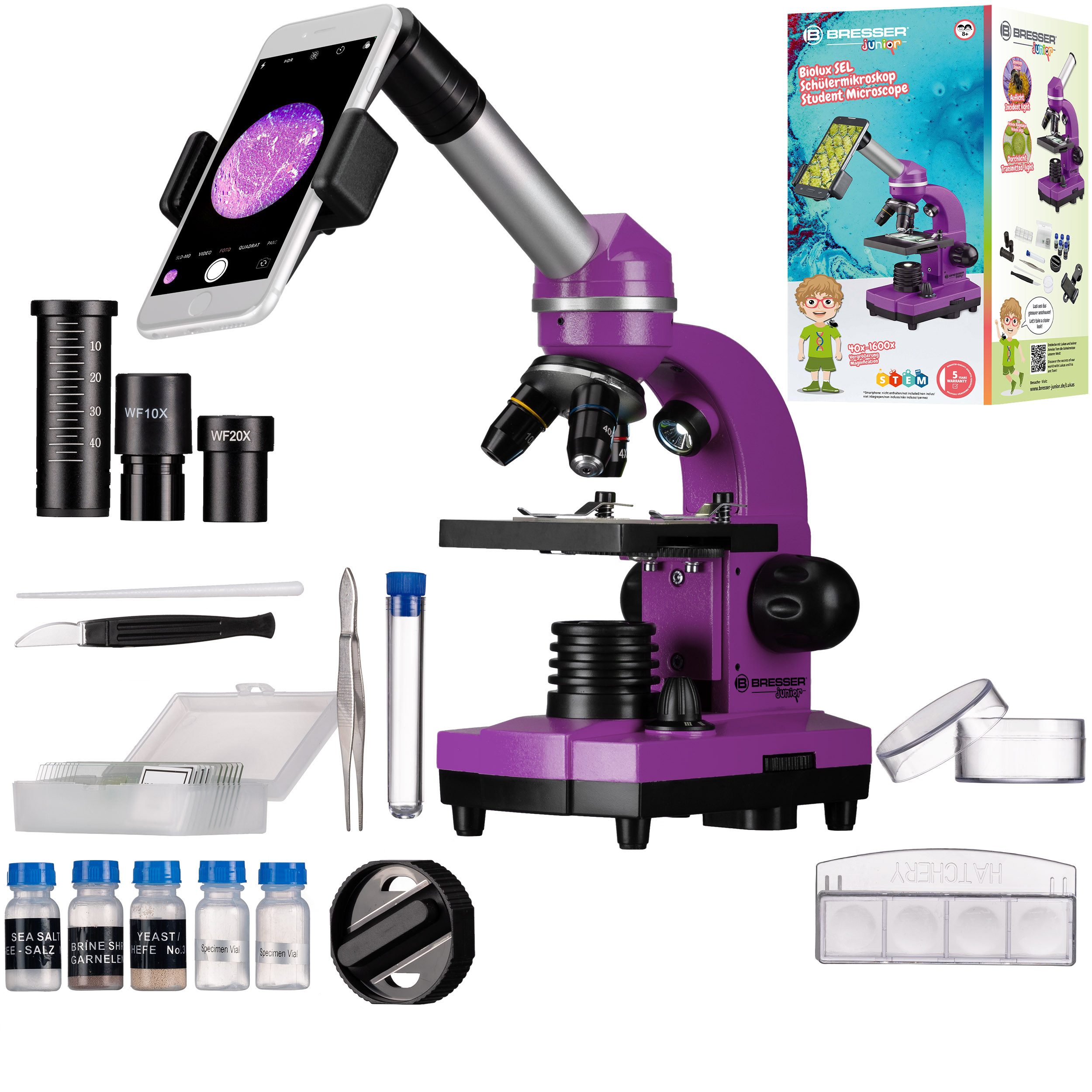 Lieferumfang | Mikroskop, 2 Weitfeld-Okulare: 10x und 20x, 3 Objektive: 4x, 10x und 40x, Barlow-Linse mit bis zu 2-facher Vergrößerung, Mikroskopierbesteck, Hefe, Seesalz, Garneleneier, Garnelenbrutanlage, Microcut-Mikrotom, leere Objektträger und Deckgläser, Dauerpräpa |